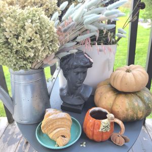 Осенняя сервировка стола с посудой из коллекции Harvest. Белоснежный фарфор с золотой каймой, посуда в форме овощей. Тарелки и кружки в форме тыквы, сервировочные блюда в форме баклажана, перцев, ананаса. Скатерть горчичного цвета, столовые приборы с золотым покрытием и бокалы с золотым кантом. Все это сделает вашу сервировку стола осенней тематики элегантной, теплой и уютной.