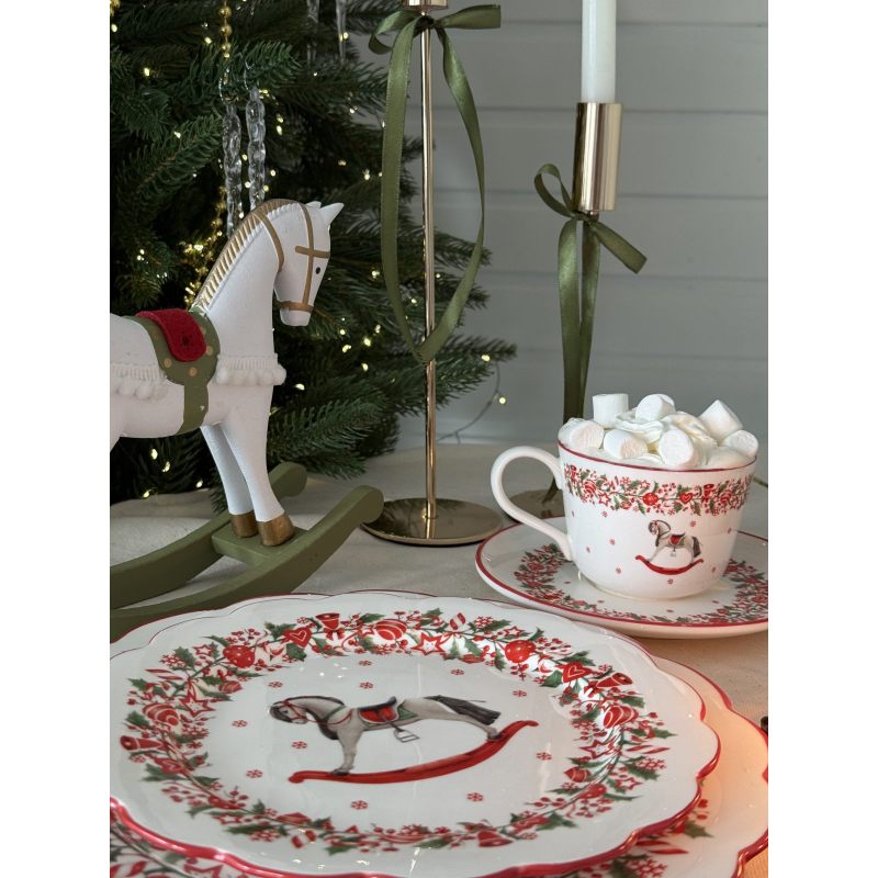 Погрузитесь в мир волшебства Рождества с нашей изысканной десертной тарелкой Christmas Traditions! Эта великолепная фарфоровая тарелка диаметром 21 см станет не просто элементом сервировки, а настоящим центром притяжения на вашем праздничном столе. С красной окантовкой и изящным изображением лошадки, она напомнит вам о лучших традициях и уюте семейных праздников.