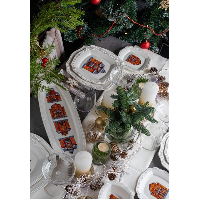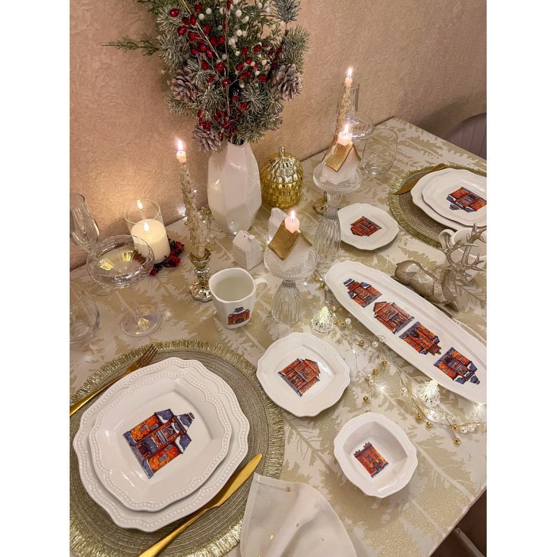 Новогодний набор посуды для сервировки стола "Snow Town", 5 предметов — премиум-фарфор, уют и волшебство в каждом штрихе.