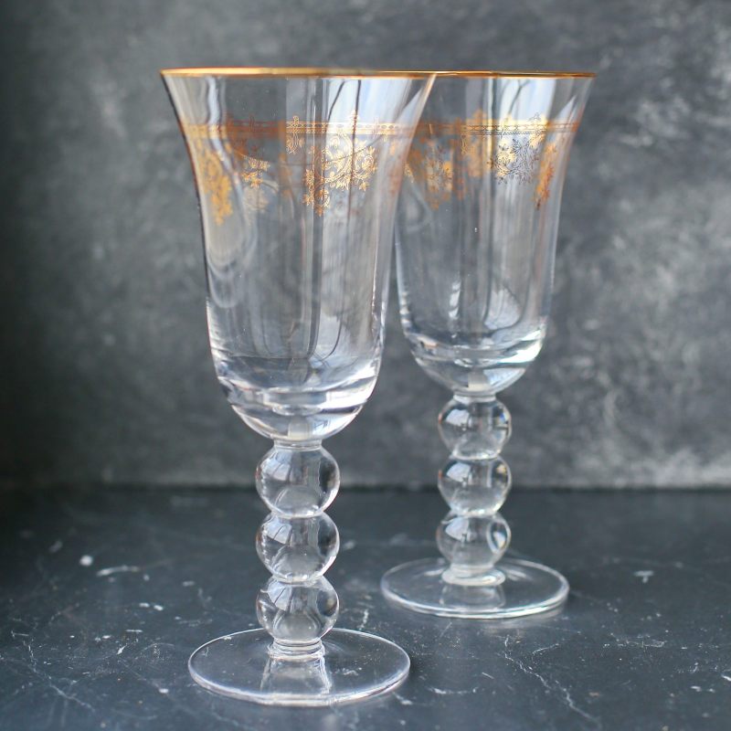 - Дизайн: бокалы выполнены в классическом стиле с утончённой ножкой, украшенной объёмными стеклянными элементами в виде шариков. Такая деталь придаёт изделиям особый шарм и делает их по-настоящему уникальными.