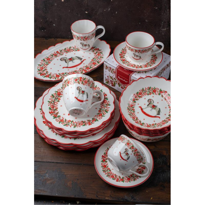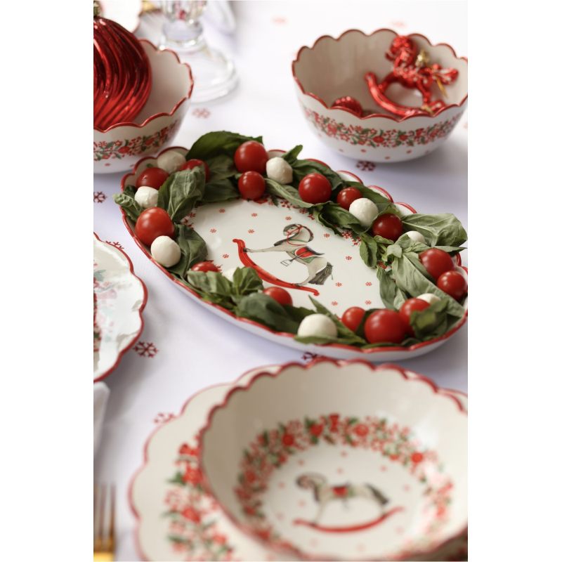 Погрузитесь в мир волшебства Рождества с нашим изысканным овальным блюдом Christmas Traditions! Эта великолепное фарфоровое блюдо длинной 32 см станет не просто элементом сервировки, а настоящим центром притяжения на вашем праздничном столе. С красной окантовкой и изящным изображением лошадки, она напомнит вам о лучших традициях и уюте семейных праздников.