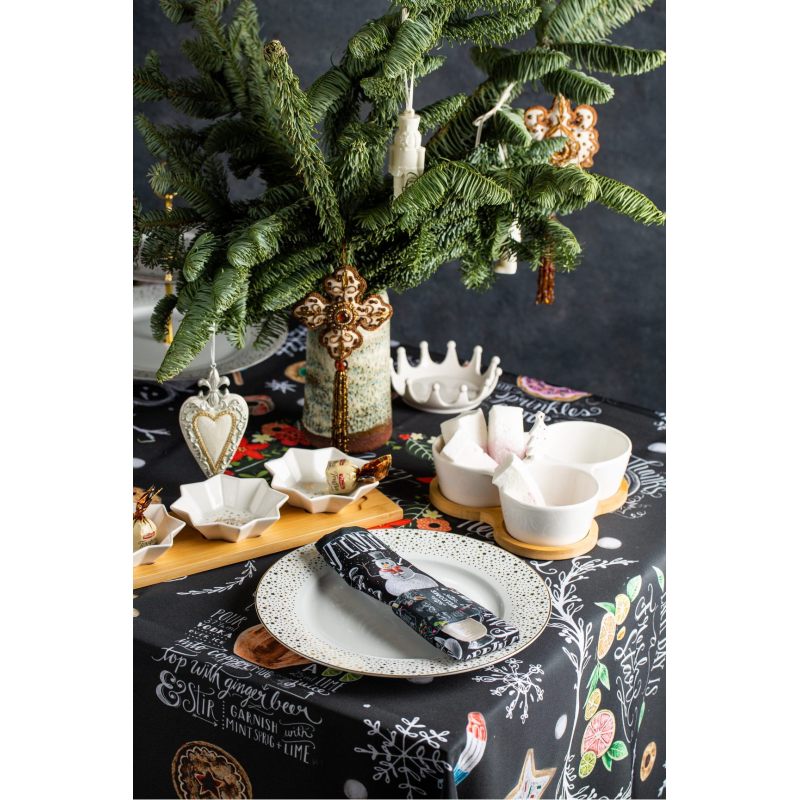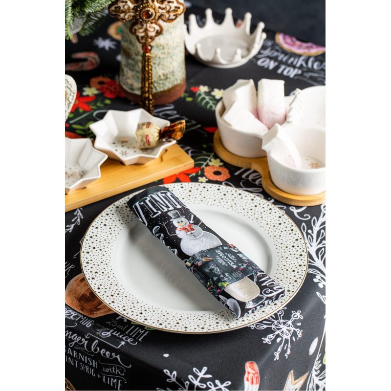 Стильный и эффектный элемент сервировки - салфетка из коллекции "Меловая доска"! Контрастное сочетание черного и белого цвета и новогодняя тематика - такая текстильная салфетка из практичного, не требующего специального ухода и долговечного габардина станет прекрасном дополнением Вашего новогоднего интерьера.