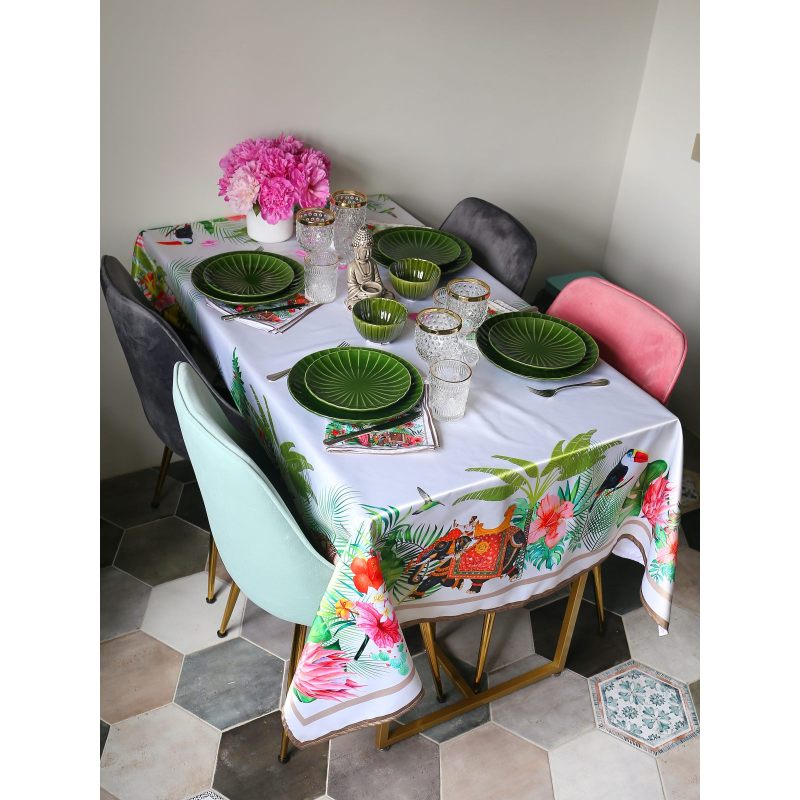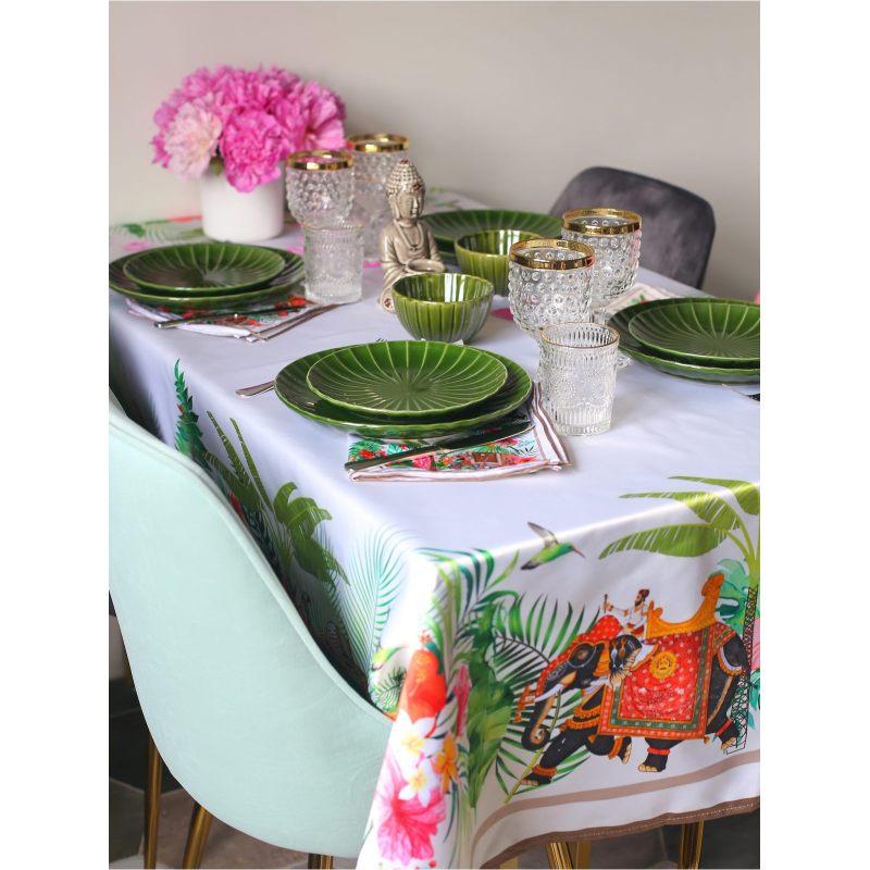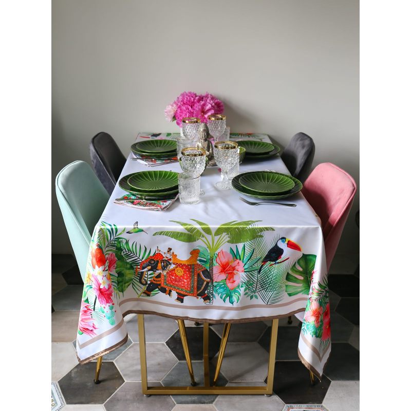 Прямоугольная скатерть "INDIA" станет стильным дополнением интерьера Вашего дома. Выполненная из практичного современного материала - сатэна (100% полиэстер). Правильно подобранная скатерть - украшение всего дизайна кухни или гостиной. Она может быть деталью праздничной или повседневной сервировки. Создайте неповторимую атмосферу в Вашем доме с предметами интерьера из нашего магазина!