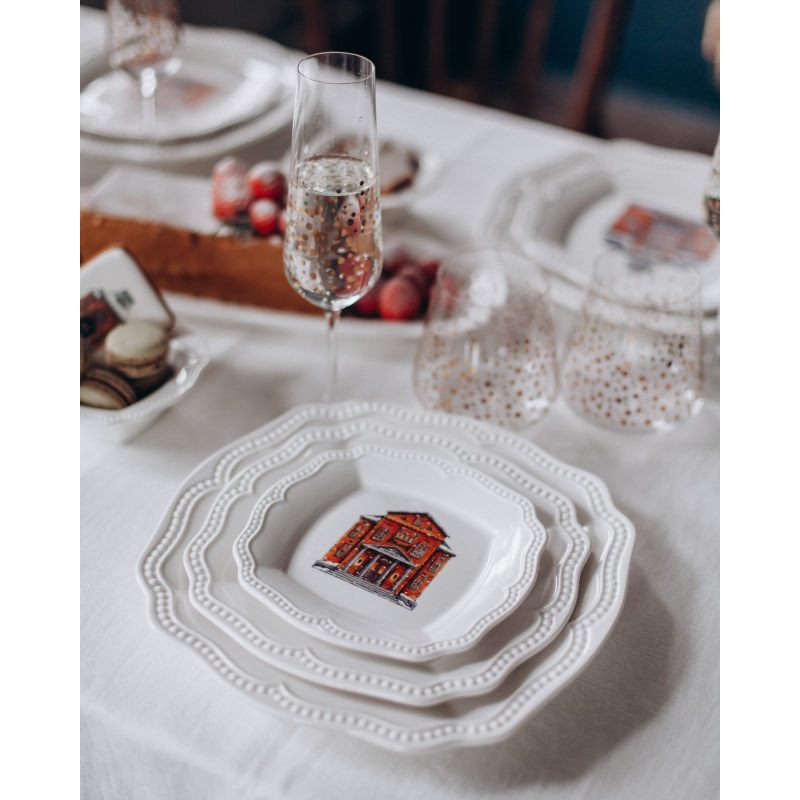 Уникальный дизайн: На белоснежном фарфоре оживает сказочный домик, окружённый снежными узорами и новогодним принтом. Это не массовая продукция, а тщательно продуманная деталь интерьера, которая станет центром внимания гостей.