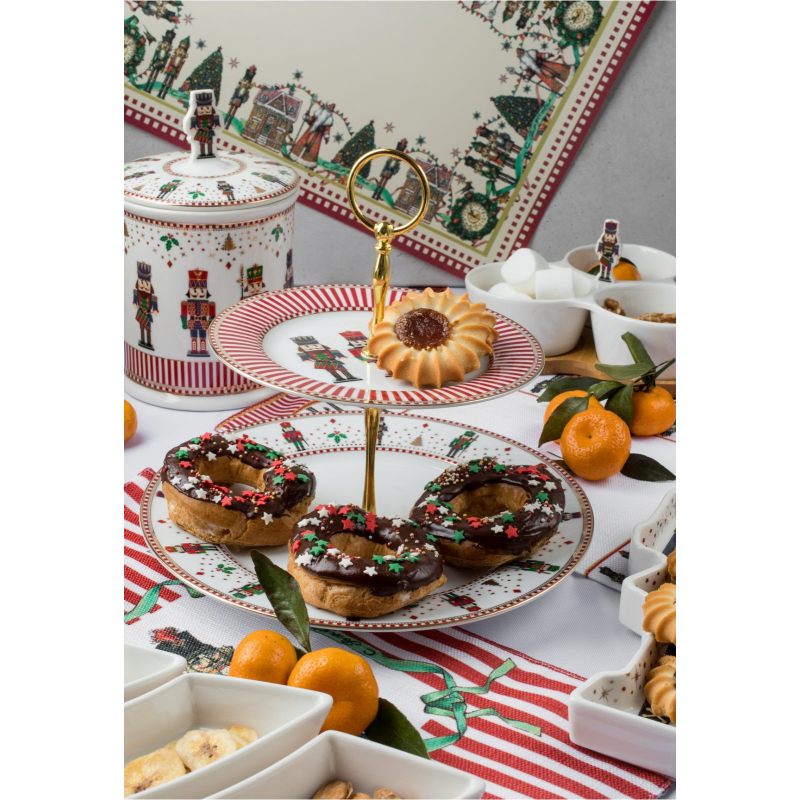Банка для печенья "NUTCRACKERS" станет милым дополнением обстановки Вашей кухни, завершит сервировку стола и создаст особую праздничную атмосферу. Она изготовлена из высококачественного фарфора. Крышка плотно закрывает банку, не пропуская влагу и посторонние запахи и позволяя печенью оставаться свежим в течение долгого времени. Банка украшена изображениями сказочных Щелкунчиков и новогодних атрибутов. Милые фигурки Щелкунчиков поднимают настроение и создают атмосферу новогоднего волшебства. Банка для печенья прекрасно сочетается с другими предметами коллекции "NUTCRACKERS". Такая посуда станет отличным подарком для Ваших друзей и близких. Создайте неповторимую праздничную атмосферу в Вашем доме вместе с нашим интернет-магазином!