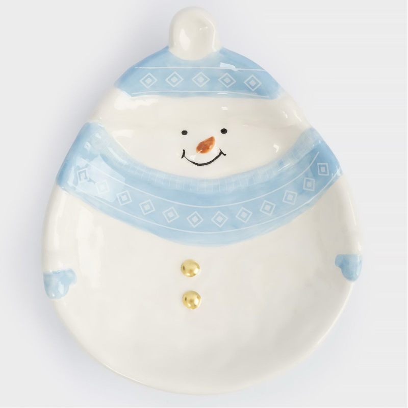 Новогоднее блюдо "Снеговик" — создайте атмосферу зимней сказки на вашем столе! Подарите своим праздничным ужинам особое настроение с элегантным керамическим блюдом в виде милого снеговика. Выполненное в нежных бело-голубых тонах, оно станет ярким акцентом новогодней сервировки и подчеркнет уют вашего дома.