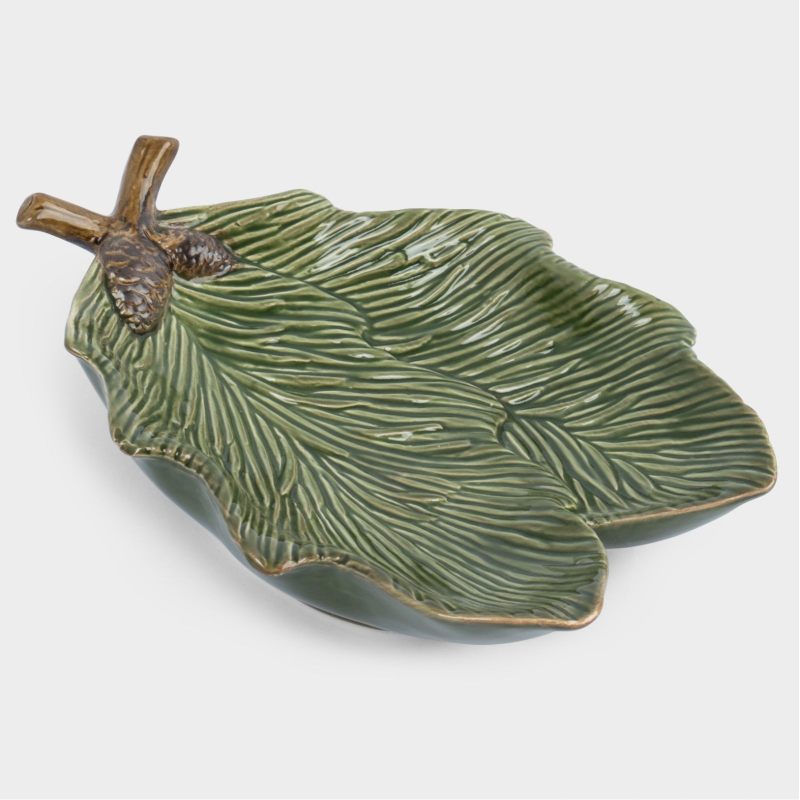 Новогоднее блюдо сервировочное "Шишкин лес" 23×15 см — атмосфера праздника в каждой детали. Погрузитесь в уют и волшебство зимних праздников вместе с новогодним блюдом "Шишкин лес". Выполненное из прочной и экологичной керамики, оно повторяет форму изящной еловой ветки насыщенного зеленого цвета, украшенной рельефными шишками. Такой дизайн не только притягивает взгляды, но и мгновенно создает атмосферу зимнего леса на вашем праздничном столе.
