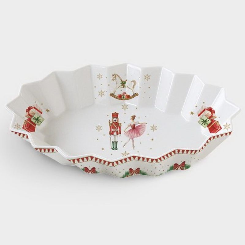 Представьте: аромат горячего глинтвейна, мягкий свет гирлянд, смех друзей… и на столе — фарфоровое блюдо “Щелкунчик и фея”, которое притягивает взгляды и вызывает улыбки.