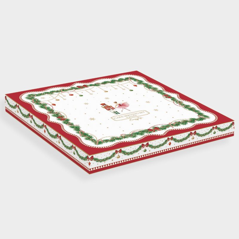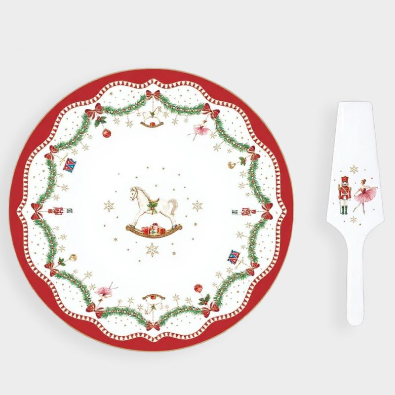 Новогоднее блюдо для торта с лопаткой "Щелкунчик и фея" 32 см – фарфор, Easy Life Italy.