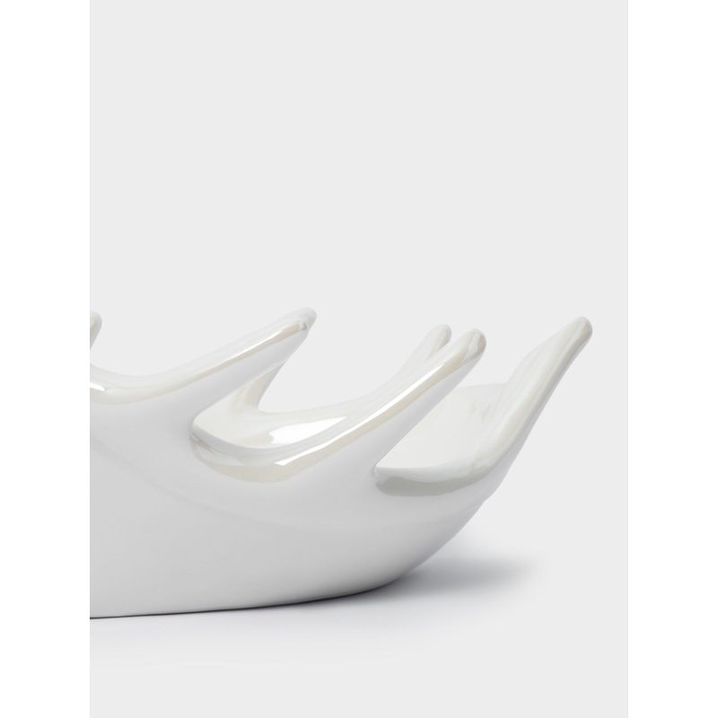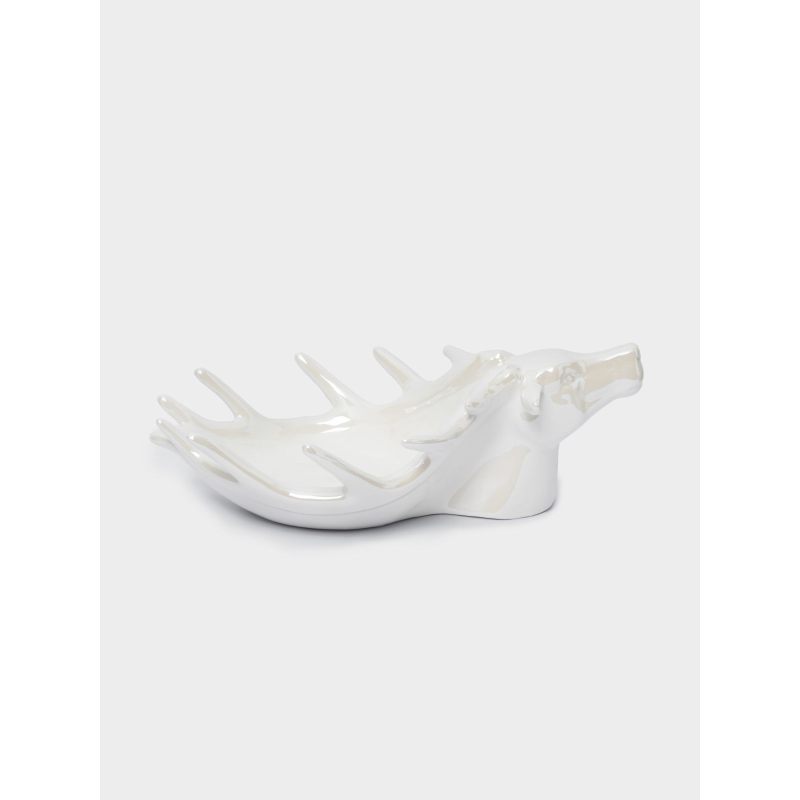 Изысканное новогоднее блюдо, украшенное благородным изображением оленя, станет настоящим украшением праздничного стола. Белоснежный фон с перламутровым блеском создаёт атмосферу зимней сказки, а изящные линии рисунка придают изделию особую элегантность.