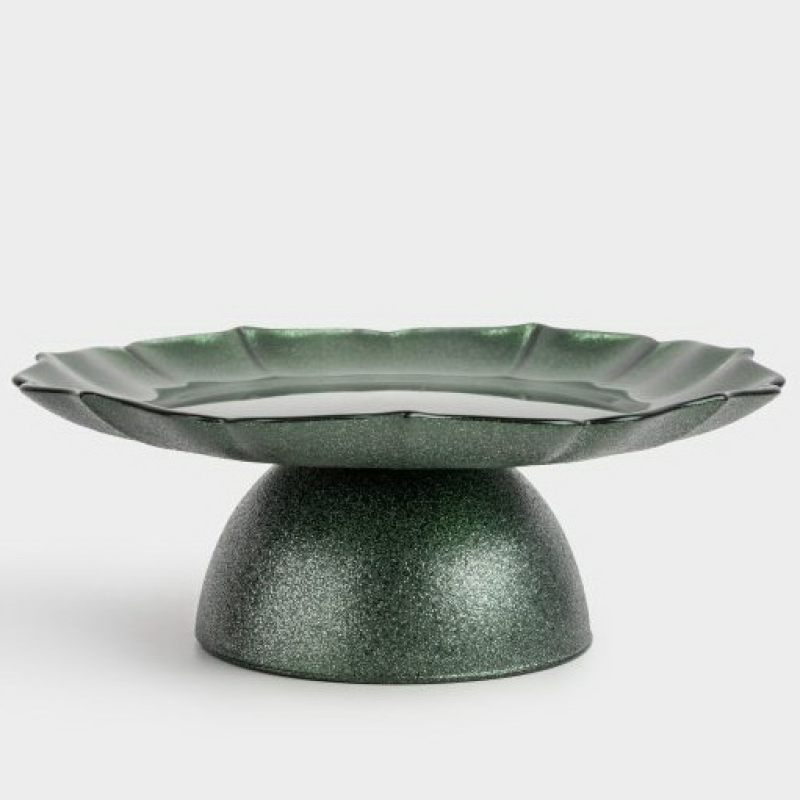 Блюдо на ножке новогоднее "Барокко" 21×8 см — изумрудное сияние вашего праздничного стола