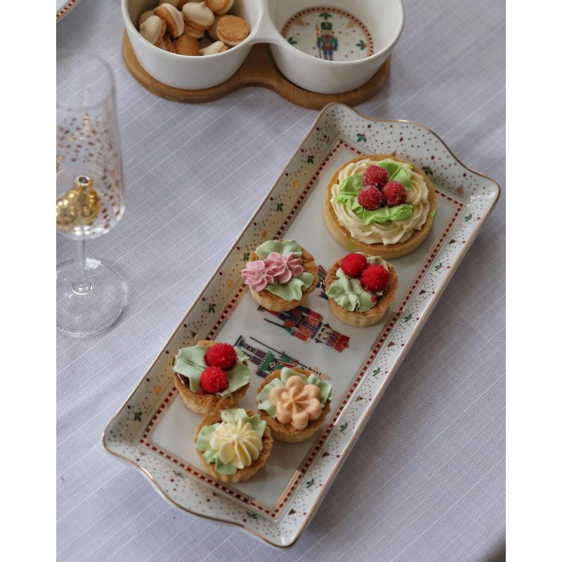 Красивое прямоугольное блюдо "NUTCRACKERS" преобразит сервировку любого стола и создаст особую праздничную атмосферу. Сервировочное блюдо выполнено из фарфора, украшено изображениями сказочных Щелкунчиков. Их милые фигурки поднимают настроение и создают атмосферу новогоднего волшебства. Блюдо прекрасно сочетается с другими предметами коллекции "NUTCRACKERS". Имеет привлекательную упаковку и станет отличным подарком для Ваших друзей и близких. Создайте неповторимую праздничную атмосферу в Вашем доме вместе с нашим интернет-магазином!