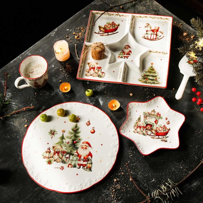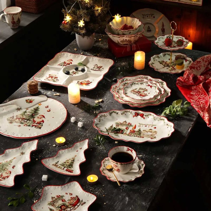 Коллекция «Рождественский винтаж» от бренда Decor de table создана для эстетичной зимней сервировки стола. Сервировочная посуда изготовлена из твердого фарфора – прочного белоснежного материала. Надглазурная деколь передает утонченную роскошь, тепло и нежность семейного Рождества. Рисунки с новогодними сюжетами погружают в атмосферу зимней сказки и напоминают о детстве. Аккуратный рельеф делает картинки живыми. Набор посуды или отдельные предметы серии, например, красочные фигурные блюда, станут великолепным подарком в период новогодних праздников.