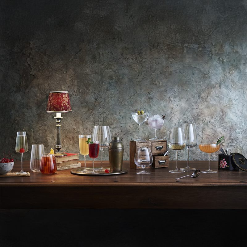 Бокал для красного вина, созданный для того, чтобы подчеркнуть многогранность красных вин, имеет широкую чашу, тщательно продуманную форму, которая способствует аэрации и позволяет раскрыть самые насыщенные и структурированные ноты. Его изысканный вытянутый дизайн напоминает об элегантности подпольных баров эпохи сухого закона. Высокотехнологичное выдувное хрустальное стекло.