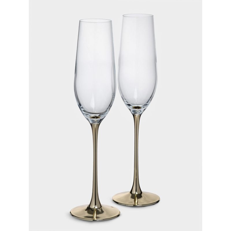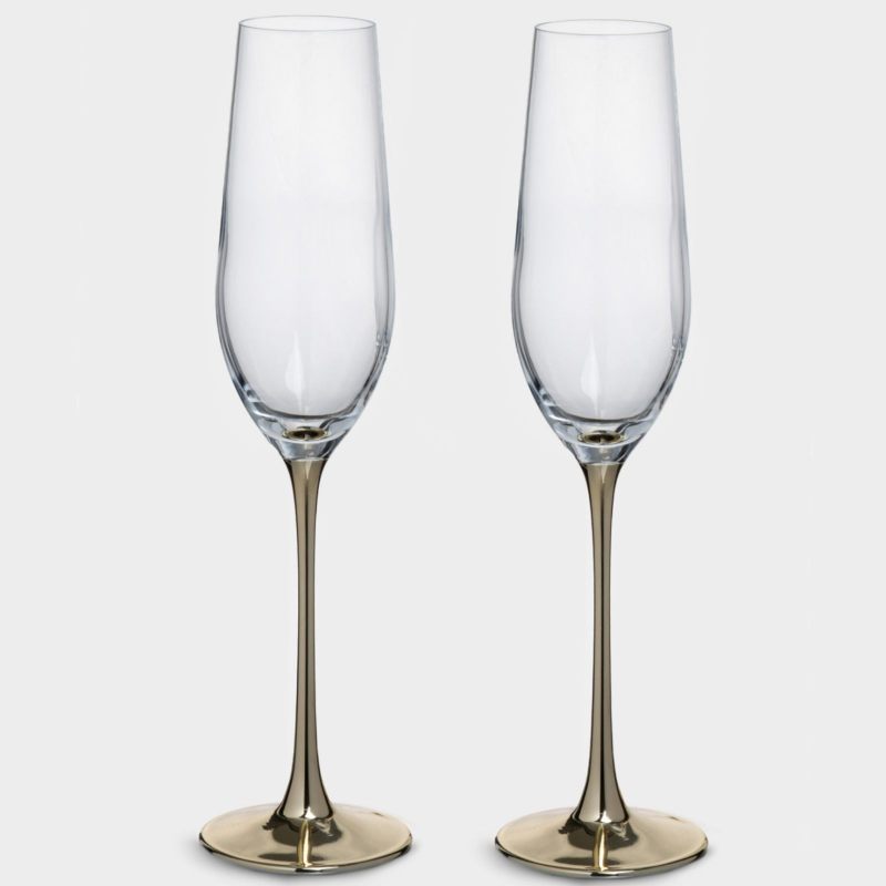Изящный набор бокалов для шампанского станет настоящим украшением новогоднего стола. Благородная золотистая ножка и кристально чистое стекло создают роскошный образ, который подчеркнет торжественность момента.
