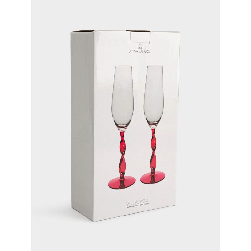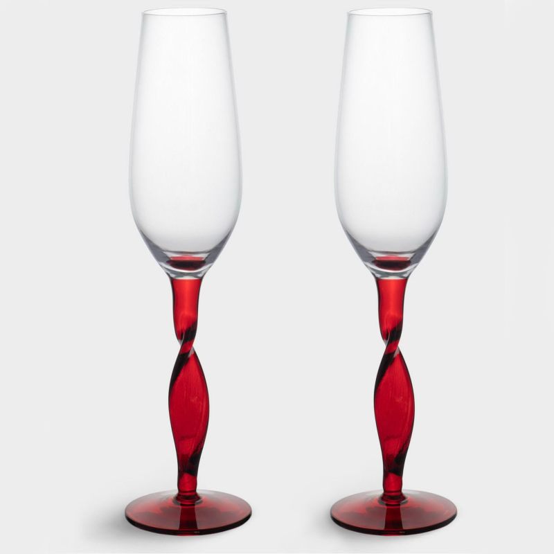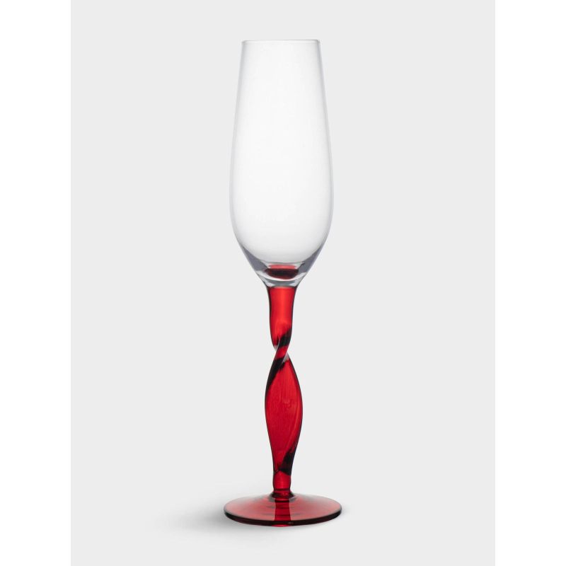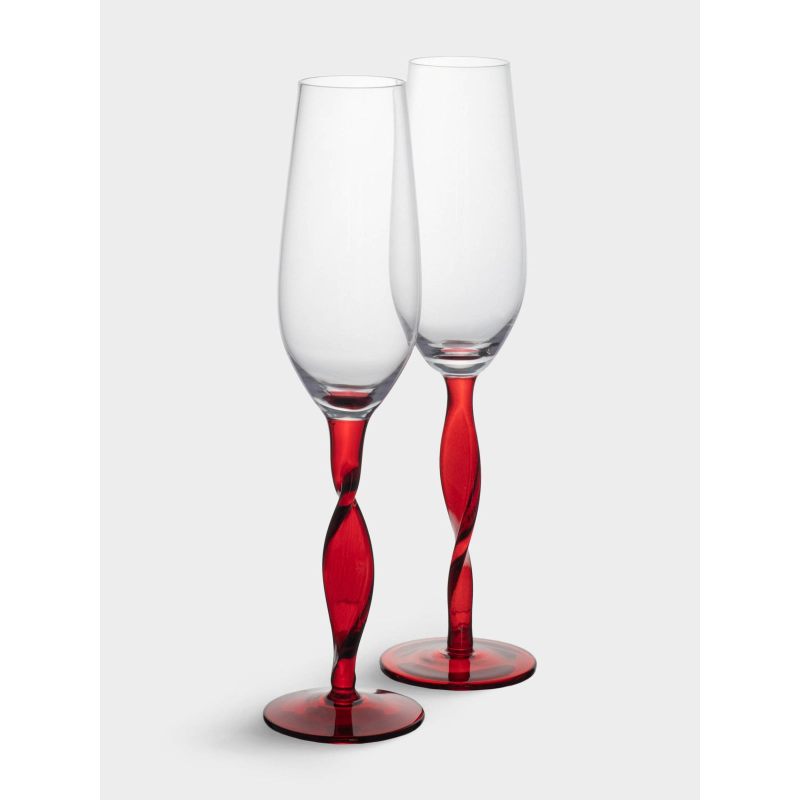 Новогодний набор бокалов для шампанского на красной ножке 220 мл, 2 шт — подарите празднику вкус роскоши!