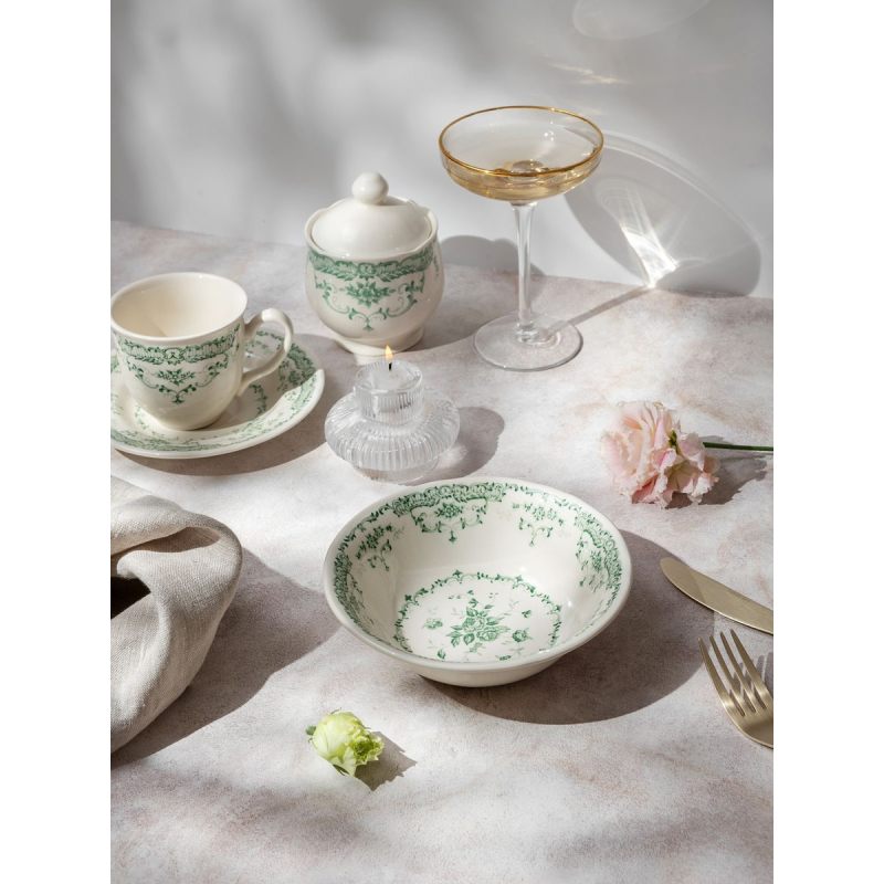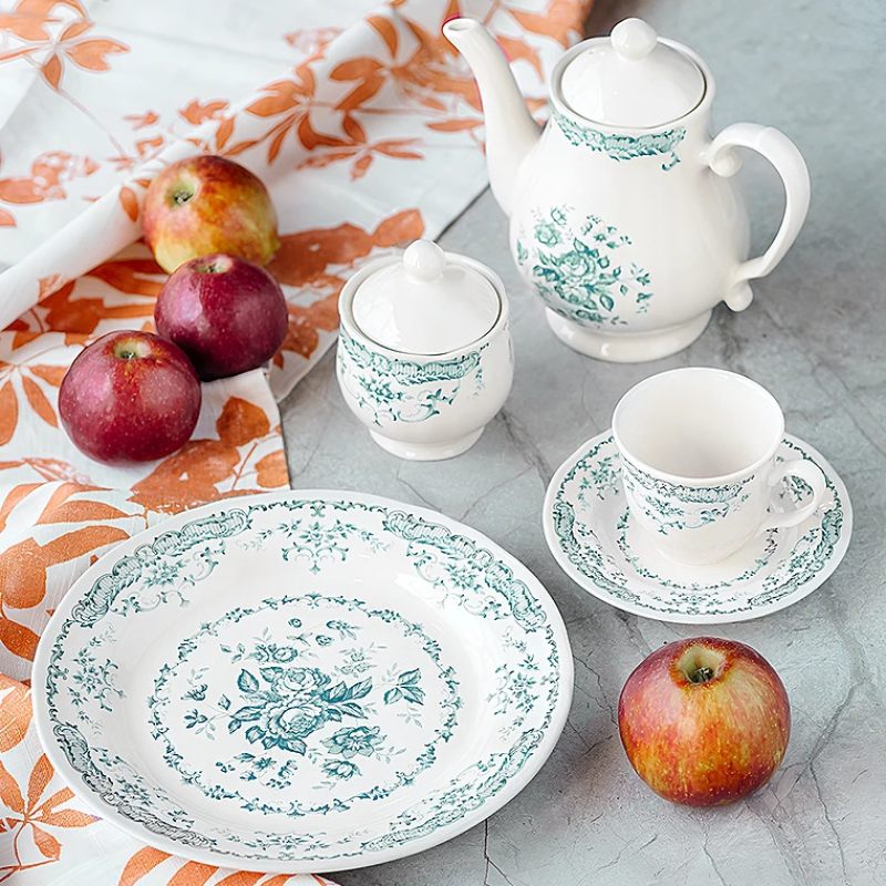 Нежный флористический дизайн. Тонкий рисунок роз в винтажном стиле, выполненный с удивительной детализацией, придаёт посуде особый шарм. Каждый элемент словно создан вручную — уникальность в каждой детали.