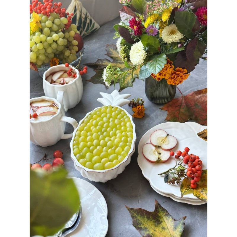 Яркий и стильный белый цвет посуды "Harvest Collection" придется по вкусу не только ценителям классического стиля, но и любителям экзотики. Чаша для сервировки соединяет в себе неповторимый дизайн и высокое качество материала. Чаша для сервировки по форме выглядит как ананас, уложенный лодочкой. Чаша для сервировки имеет глянцевое покрытие. Глазурь защищает поверхность от механических повреждений, придавая особую фактуру поверхности. Чаша для сервировки из фарфора - прекрасная идея для подарка! Такая чаша будет отличным подарком на любой праздник для женщин и мужчин ценящих как стильные эксклюзивные вещи, так и домашний уют. Эффектная фарфоровая посуда подойдет не только для домашней кухни, но и для кафе и ресторана. Вы можете собрать свой набор посуды из коллекции "Harvest Collection" от Myatashop. Набор фарфоровой посуды для кухни станет изюминкой сервировки Вашего стола. Сделайте подарок для коллеги, подберите посуду для сервировки в подарок маме, родителям, подруге, сестре или бабушке. Красивая посуда для сервировки праздничного стола – это отличный подарок на день рождения, юбилей, новоселье. Чаша для сервировки "Ананас" прекрасно сочетается с другими предметами коллекции "Harvest Collection". Вы можете собрать красивый сервиз из набора тарелок, салатников, блюд и кружек. Или сделать небольшой презент в виде чаши для сервировки "Ананас". Стильные, современные, удобные чаши придутся по вкусу любителям красивой и качественной посуды. Подобрать подарки так просто!