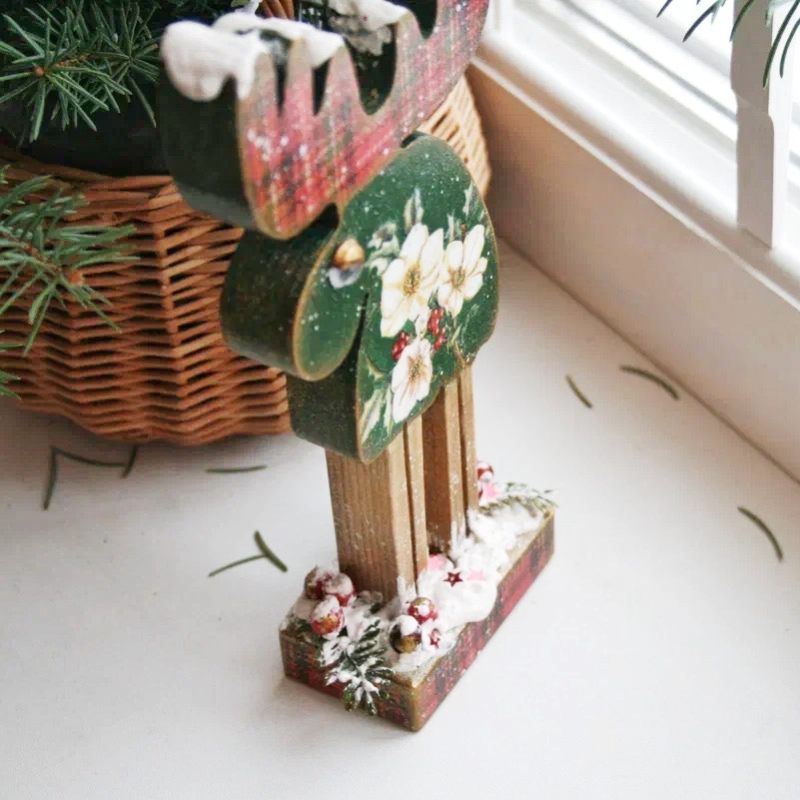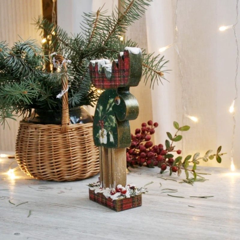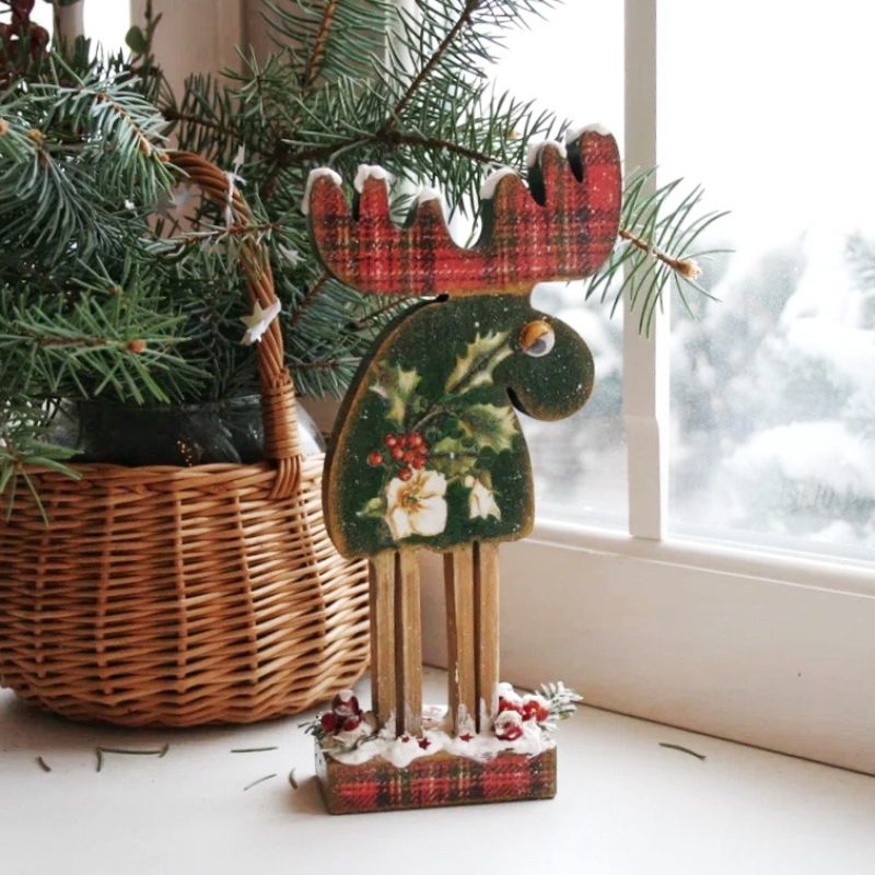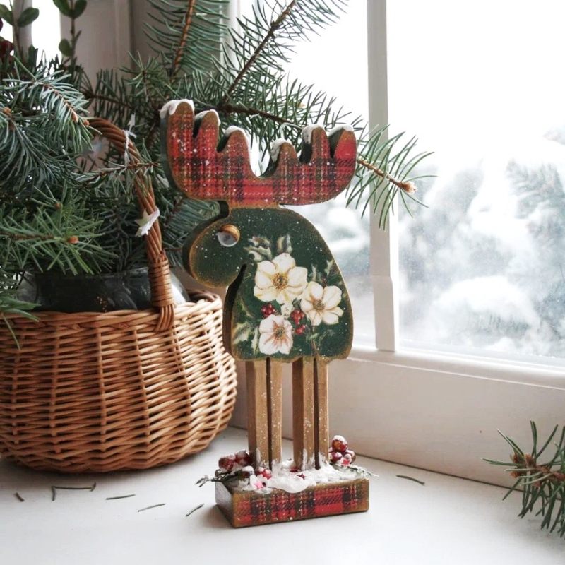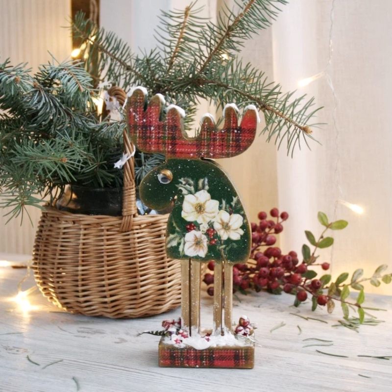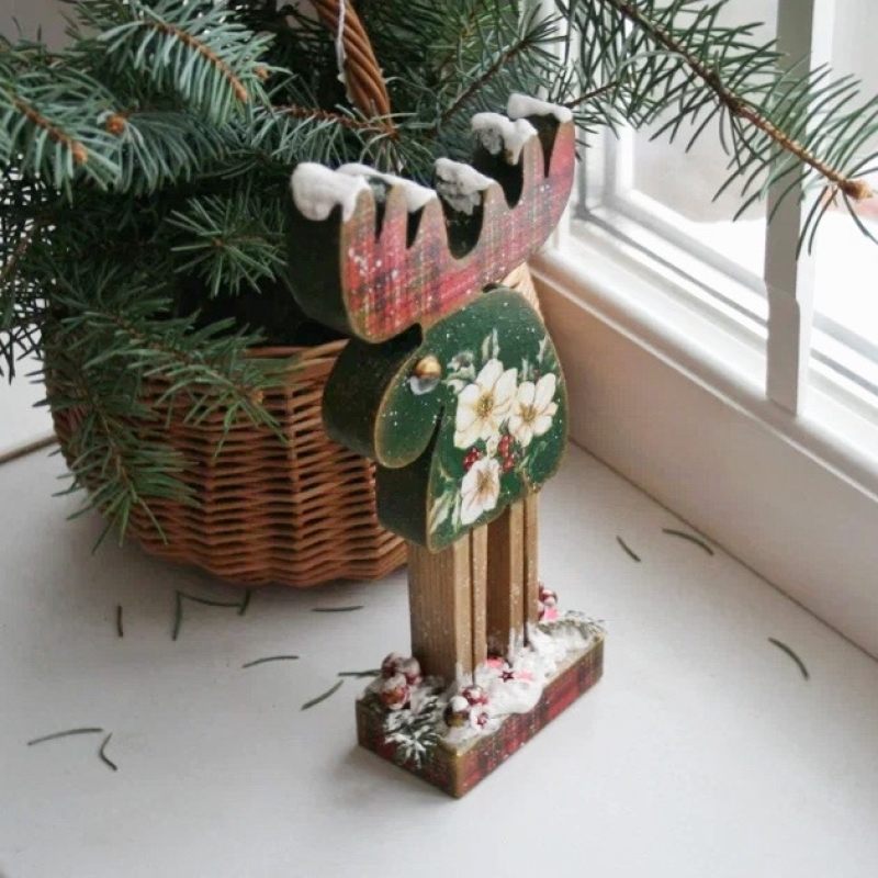 Новогодняя деревянная игрушка-лось — волшебный символ зимних праздников.