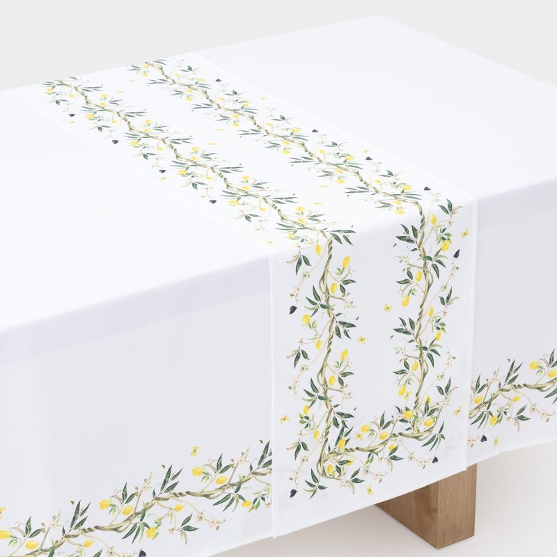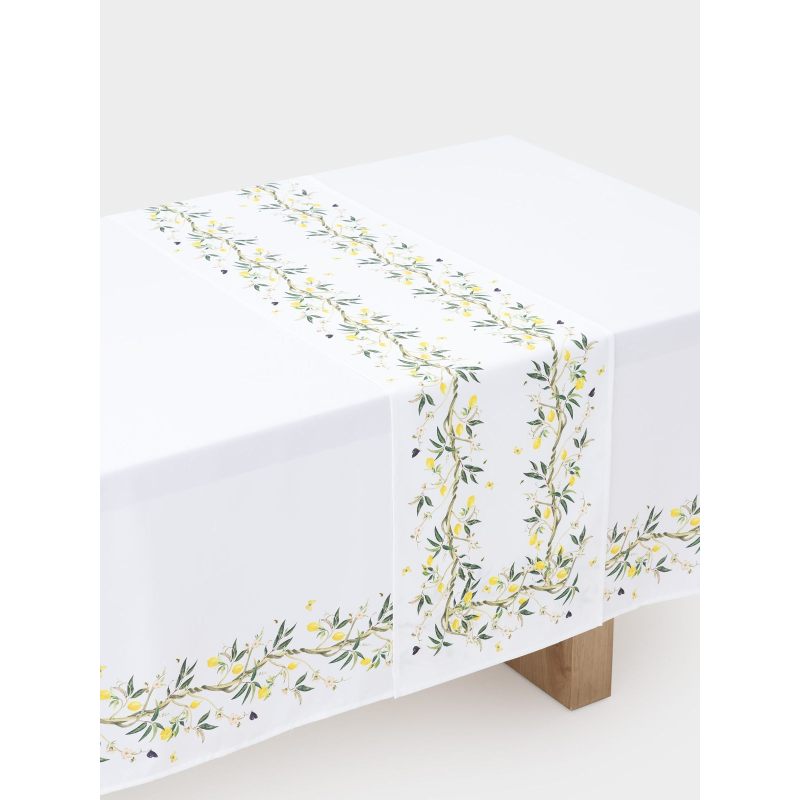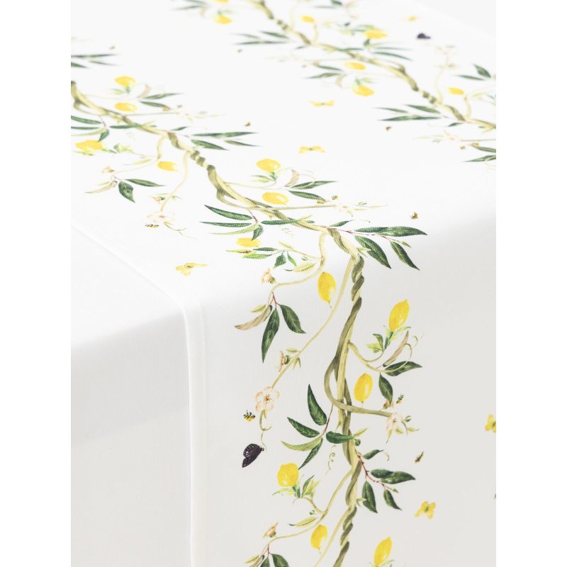 Превратите свой стол в уголок солнечного сада с помощью изысканной дорожки с изображением сочных лимонов, украшающих зелёные ветви. Этот аксессуар не просто практичная деталь сервировки — это всплеск позитива и стиля, который оживит любой интерьер.
