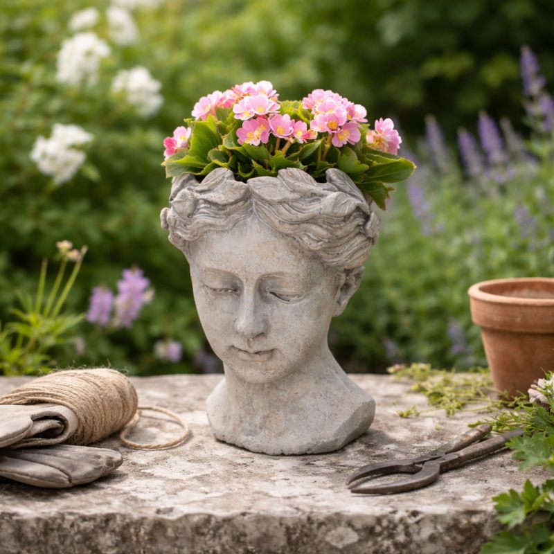 Небольшое кашпо в виде античной женской головы разнообразит интерьер и привнесет нотки загадочности в Ваш дом. Оно изготовлено из цемента и отличается тщательной проработкой деталей. При декорировании используется эффект состаривания, что добавляет загадочности. Создайте неповторимую атмосферу в Вашем доме вместе с нашим интернет-магазином!