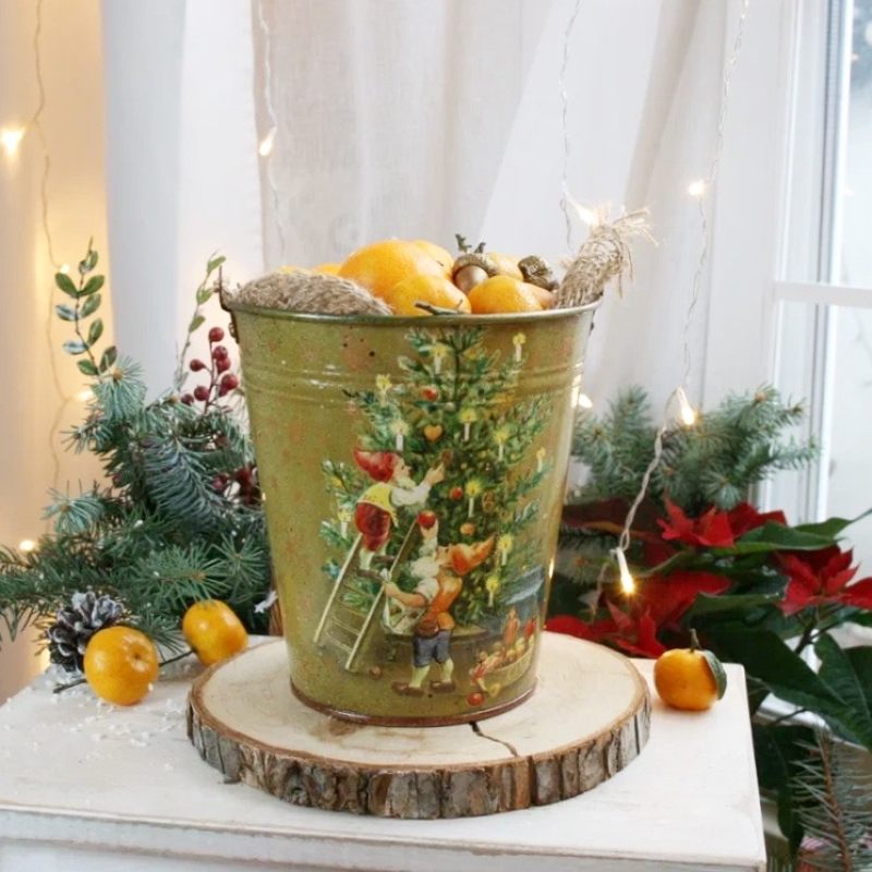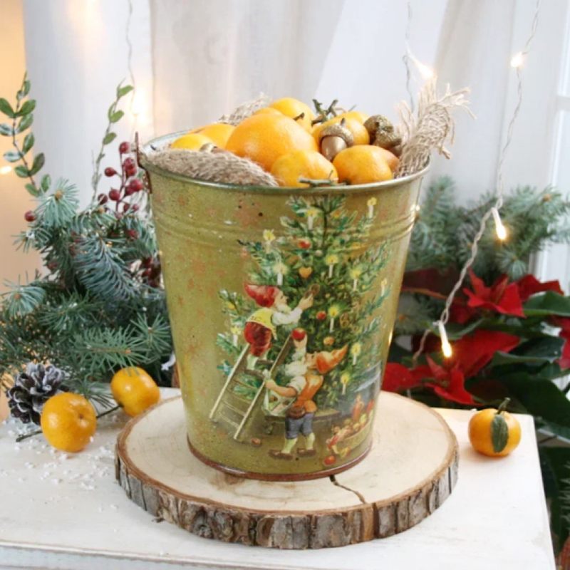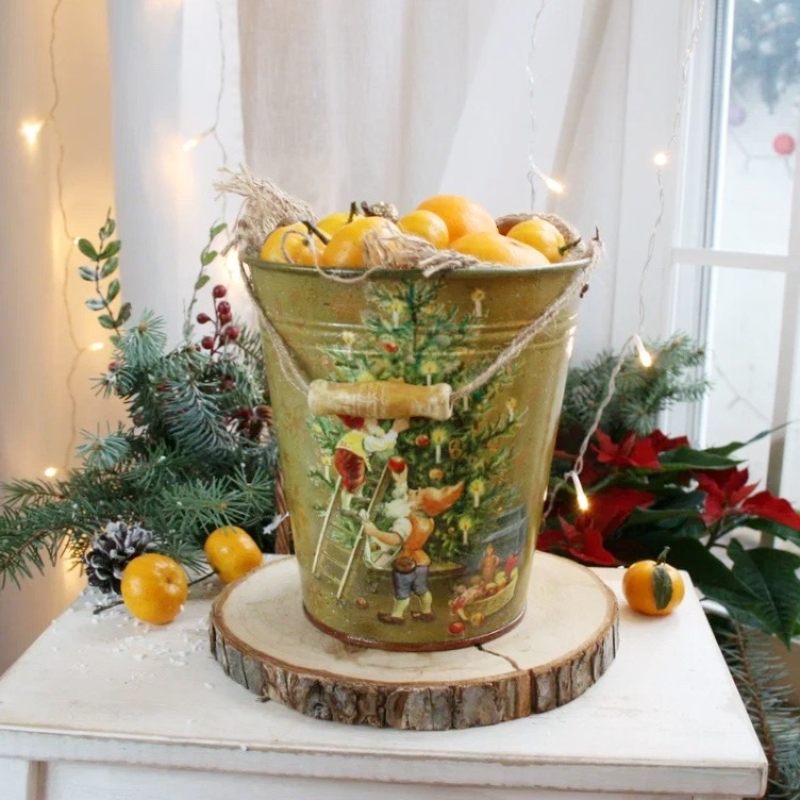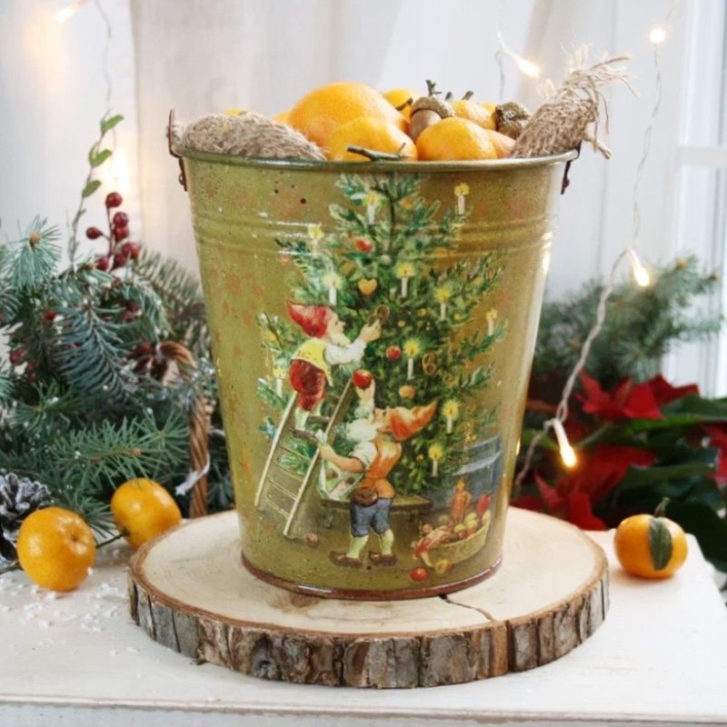 Также можно наполнить ведёрко мандаринами, новогодними вкусностями или другими мелочами.