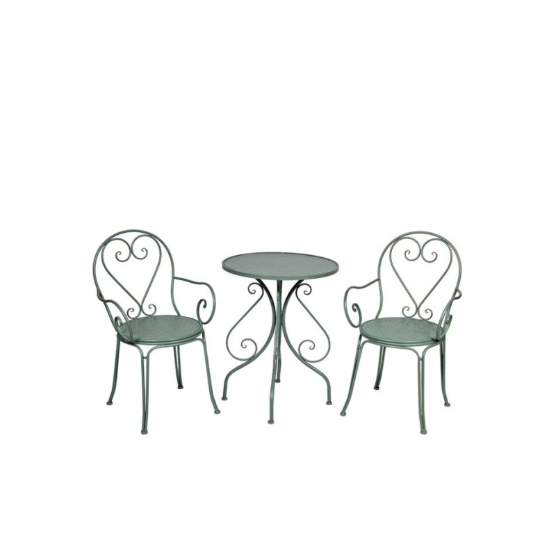 Превратите свой сад, террасу или балкон в уютное место для отдыха с этим изысканным комплектом кованой мебели. Набор состоит из круглого стола и двух стильных стульев, выполненных в едином дизайне, который сочетает в себе утончённость и практичность.