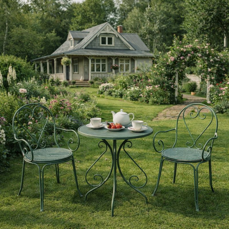 Добавьте шарма и уюта своему пространству с этим прекрасным комплектом кованой мебели!