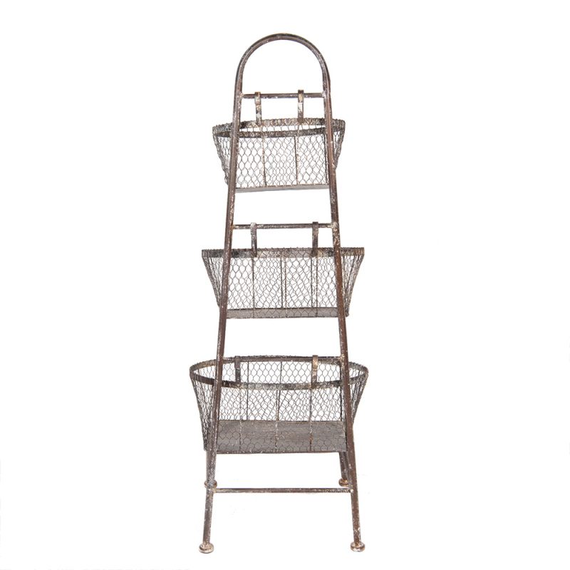Стильная цветочница в виде лестницы с тремя вместительными корзинами из металлической сетки. Идеально подойдёт для размещения комнатных растений, хранения овощей и фруктов или декоративного оформления интерьера.