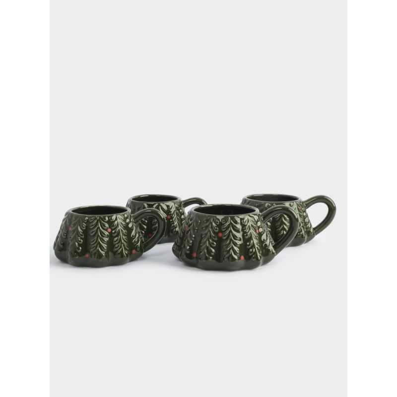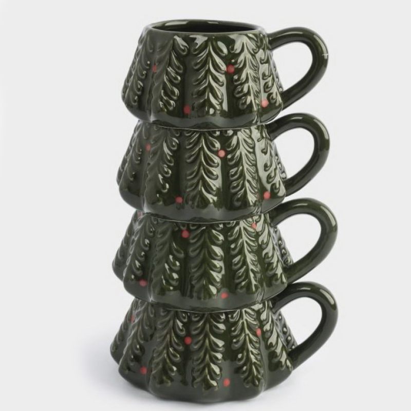Представьте: морозное утро, аромат горячего шоколада, мерцающие огни гирлянды… И на столе — изящная башня из четырех фарфоровых кружек с новогодними ёлочками, словно маленький праздничный арт-объект.