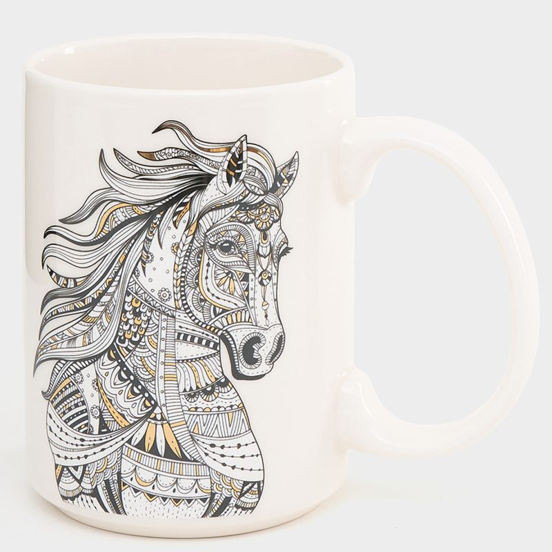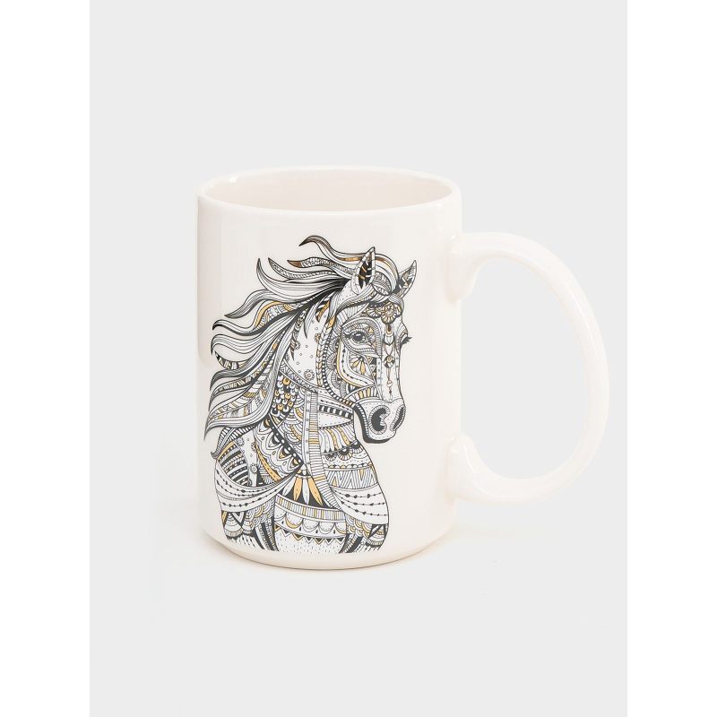 Изысканная фарфоровая кружка с утончённым изображением грациозной лошади станет настоящим украшением вашей кухни. Объём 500 мл идеально подходит для любимых горячих напитков.