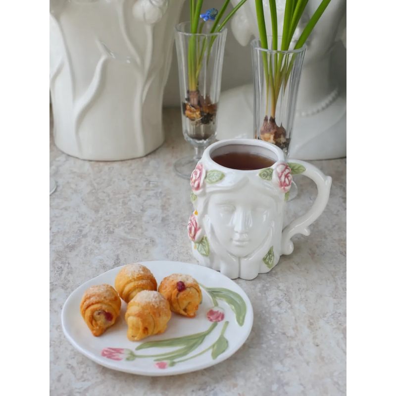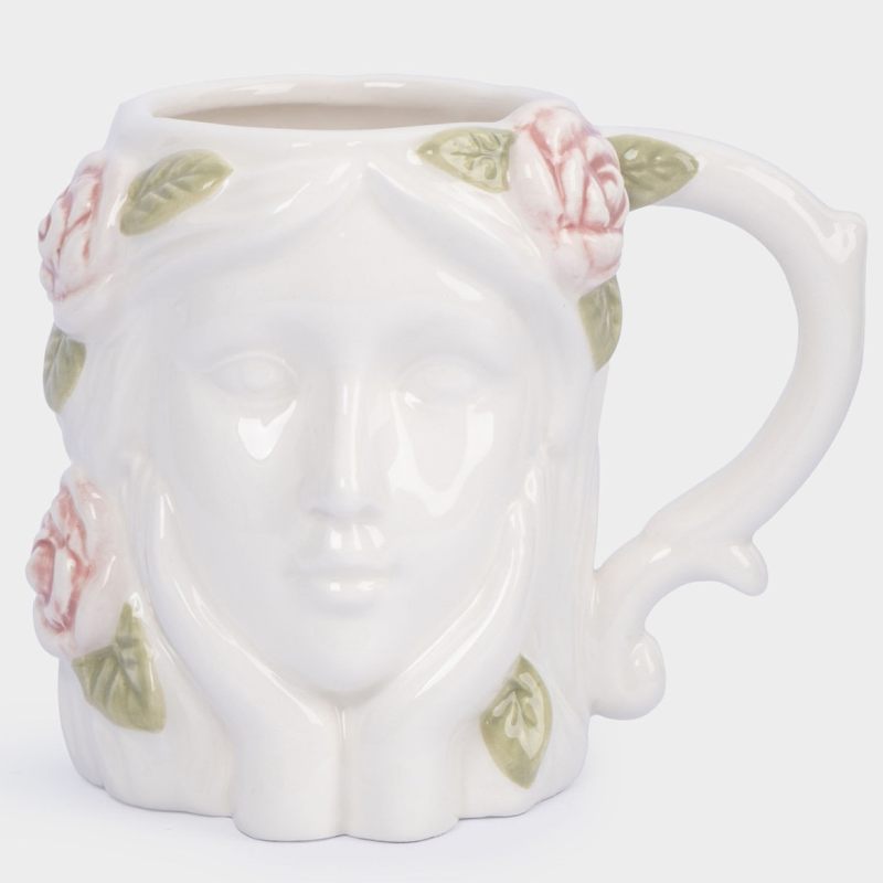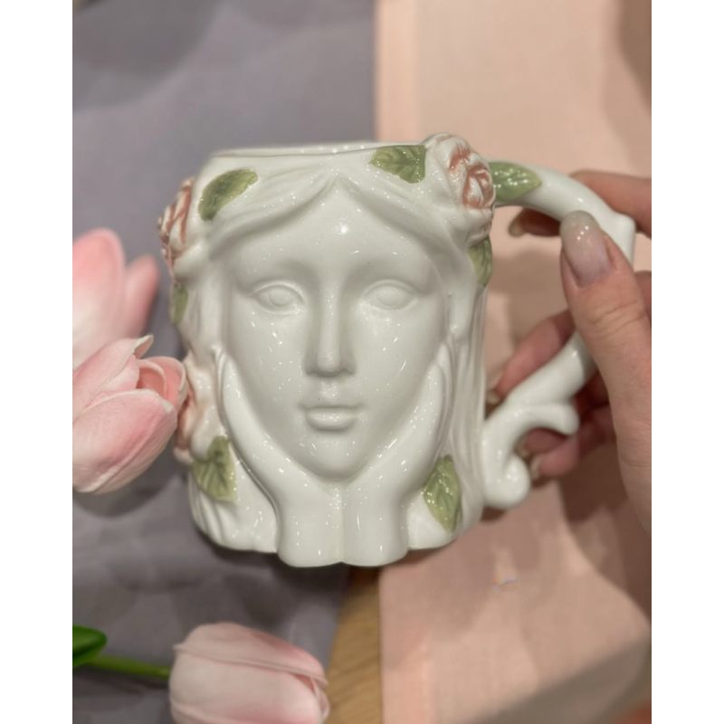 Нежный образ девушки, украшенной цветами, воплощает весеннее настроение и пробуждение природы. Элегантный дизайн сочетает утончённость и практичность: такая кружка украсит утренний чай или кофе.