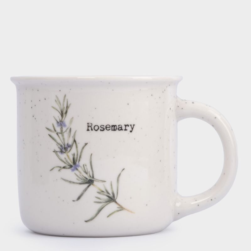 Фарфоровая кружка «Herbarium» с изображением ветки розмарина, настоявший глоток загородной жизни. Выполнена из высококачественного фарфора (New Bone China) в элегантном белом цвете с крапинками. Сочетает функциональность и эстетику: идеально для чая или кофе, большой сервировки стола.