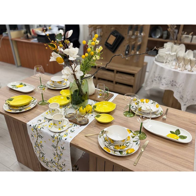 Коллекция фарфора "Лимоны" перенесёт вас в уютный уголок побережья Италии, Амальфи. Нежно-белый фон, акварельные штрихи зелени и россыпь золотисто‑жёлтых лимонов создают атмосферу старинной загородной усадьбы. Тонкий фарфор с детализированным 3D эффектом, выглядит по‑домашнему тепло и в то же время изысканно. Такая посуда словно говорит: «Остановись, насладись моментом, выпей чаю с мёдом и почувствуй вкус лета».
