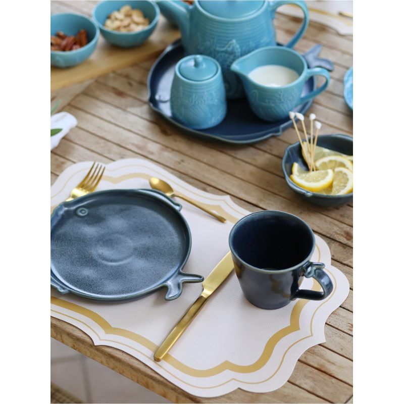 Морская тематика посуды из стильной коллекции фарфоровой посуды "Marine World Collection" придется по вкусу не только любителям экзотики, но и ценителям классического стиля. Чайная кружка соединяет в себе неповторимый дизайн и высокое качество материала. Ручка декорирована фактурным хвостиком рыбки. Большая кружка имеет полуматовое покрытие. Глазурь защищает поверхность от механических повреждений, придавая особую фактуру поверхности. Большая кружка из фарфора - прекрасная идея для подарка! Кружка для чая будет отличным подарком на любой праздник для женщин, ценящих как стильные эксклюзивные вещи, так и домашний уют. Эффектная фарфоровая посуда в морском стиле подойдет не только для домашней кухни, но и для кафе и ресторана. Вы можете собрать свой набор "морской" посуды из летней коллекции "Marine World Collection" от Myatashop. Набор фарфоровой посуды для кухни в морском стиле станет изюминкой сервировки Вашего стола. Сделайте подарок для коллеги, подберите посуду для чаепития в подарок маме, родителям, подруге, сестре или бабушке. Красивая посуда для сервировки праздничного стола – это отличный подарок на день рождения, юбилей, новоселье. "Морская" кружка прекрасно сочетается с другими предметами коллекции "Marine World Collection". Вы можете собрать красивый чайный сервиз или обеденный сервиз из набора тарелок, посуды для чаепития, салатников и кружек. Или сделать небольшой презент в виде большой кружки в морском стиле. Стильные, современные, удобные кружки для чая придутся по вкусу любителям красивой и качественной посуды. Подобрать подарки так просто!