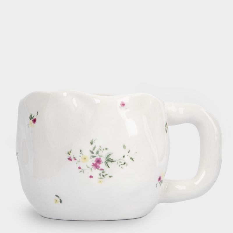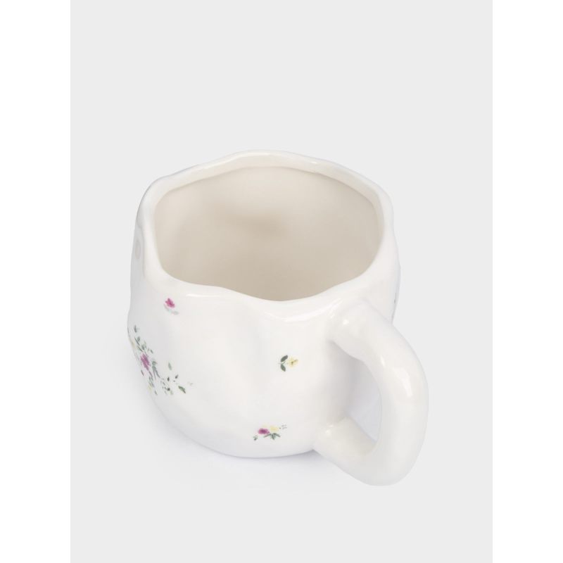 Кружка с неровными краями, украшена цветами, воплощает весеннее настроение и пробуждение природы. Элегантный дизайн сочетает утончённость и практичность: такая кружка украсит утренний чай или кофе.