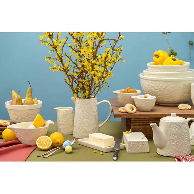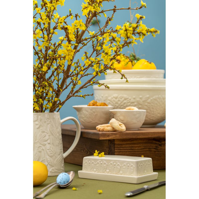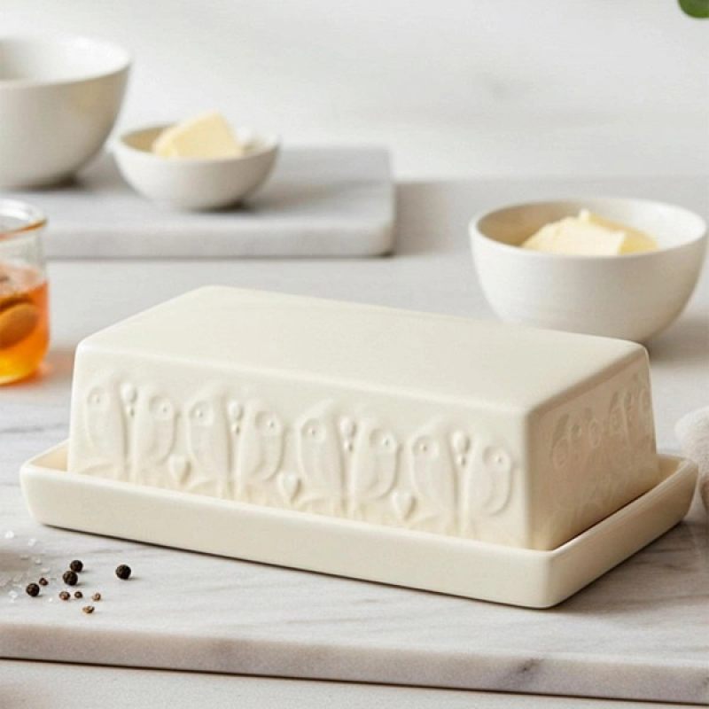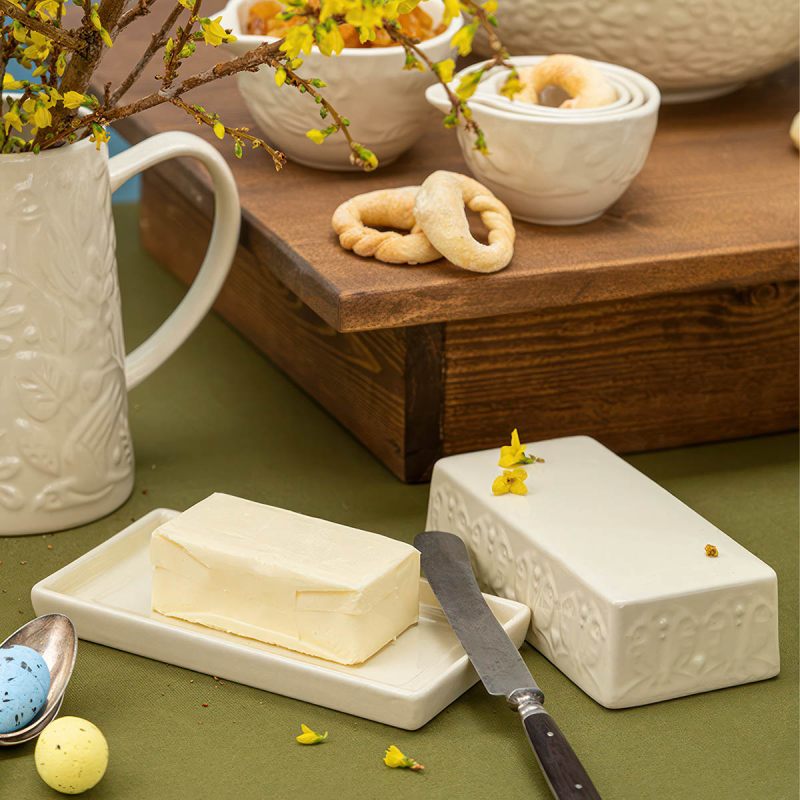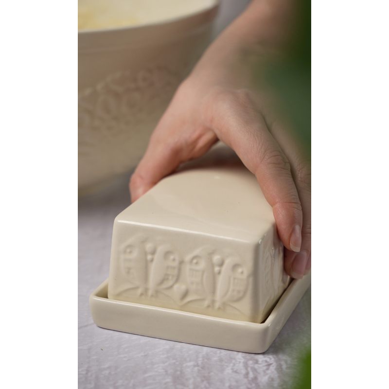 Масленка из коллекции "Birds of Paradise" – качественная посуда из экологичной каменной керамики, которая дольше сохраняет продукты свежими и великолепно дополняет любую сервировку. Отличительной особенностью серии является объемный узор природной тематики, придающий дизайну элегантные нотки. Благодаря высокой прочности и устойчивости материала к износу изделие не теряет привлекательный внешний вид на протяжении всего срока службы. Покрытие глазурью облегчает уход, обеспечивает декоративность и дополнительную защиту от внешних воздействий. Масленка состоит из поддона для масла с небольшими бортиками и объемной крышки прямоугольной формы.