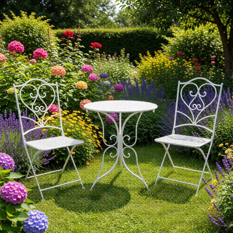 Набор для сада: кованый комплект из стола и двух стульев — стиль и комфорт в вашем ландшафте.