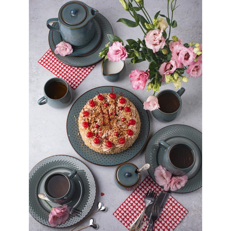 Подарите себе и близким удовольствие от каждой трапезы с премиальным набором посуды "Dots". Серый благородный оттенок, элегантная текстура с выпуклыми точками и утончённые формы превращают обычный ужин в атмосферный гастрономический ритуал.
