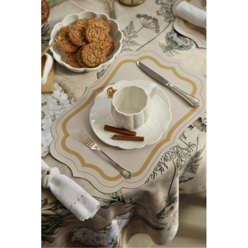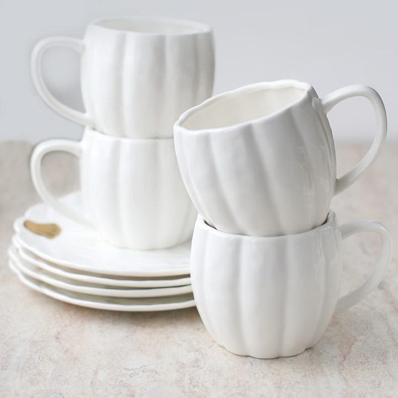 Набор кружек и десертных тарелок "Harvest Collection" — премиальная белоснежная посуда в форме тыквы с изысканным золотым кантом!