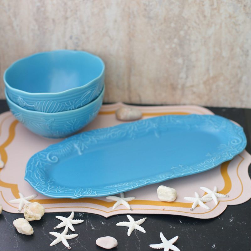 Погрузитесь в атмосферу утончённого морского шика с набором для сервировки "Marine World Collection". Небесно-голубой оттенок фарфора, напоминающий спокойную гладь океана, создаёт неповторимую атмосферу на вашем столе — будь то уютный семейный ужин или торжественный банкет.