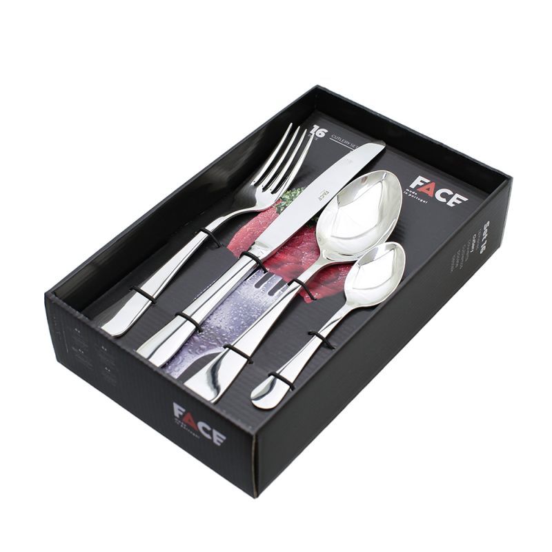 Face - португальский бренд специализируется на изготовлении столовых приборов, стал известен всему миру за счет использования инновационных технологий и надежных материалов при производстве своей продукции. Наборы столовых приборов Face соответствуют высочайшим требованиям качества, прочности и надежности, отличаются изысканными и современными дизайнами, поставляются в оригинальной упаковке.
