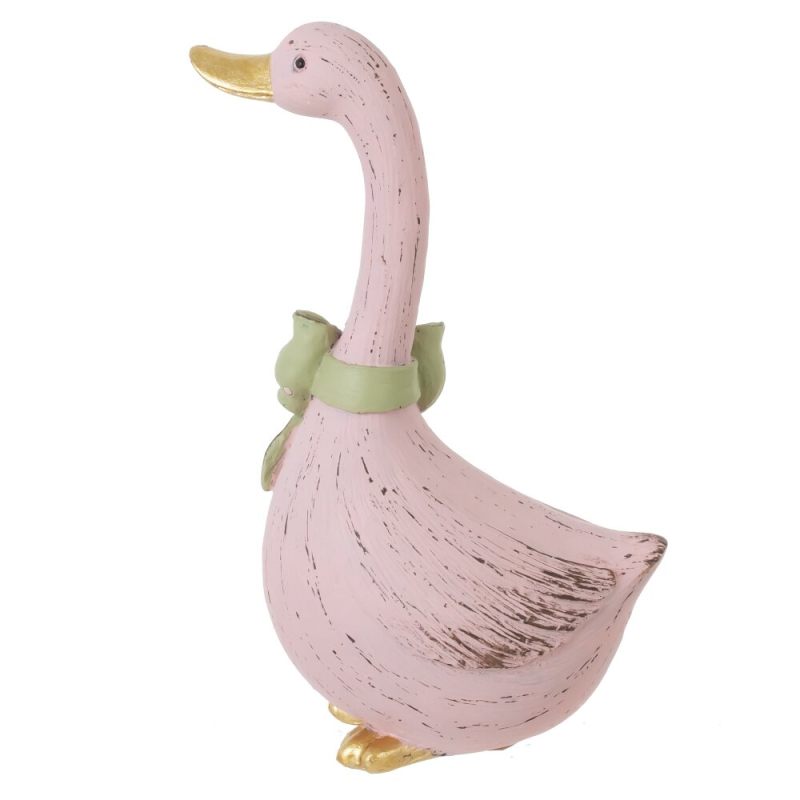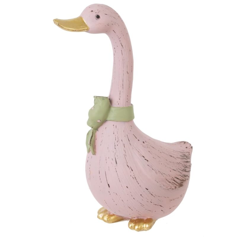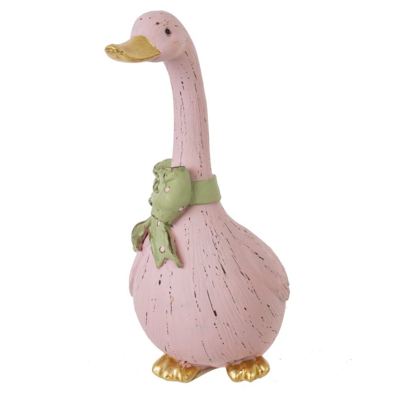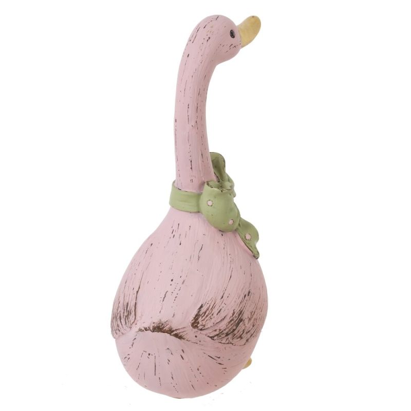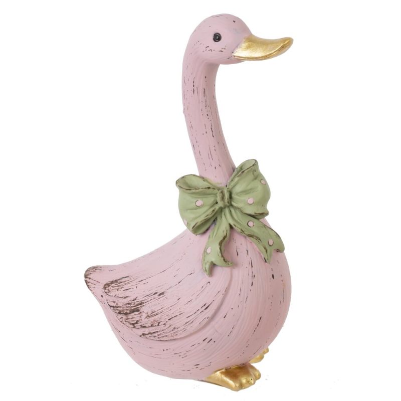 Очаровательная пасхальная фигурка гусыни в розовом цвете с бантом — уютное украшение для дома.