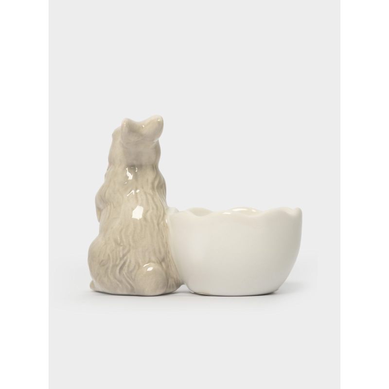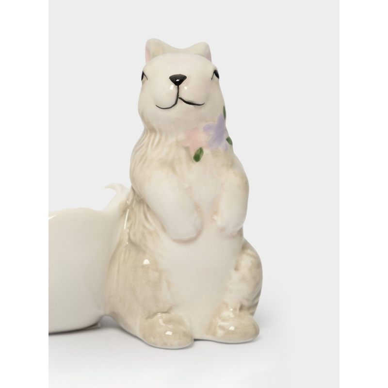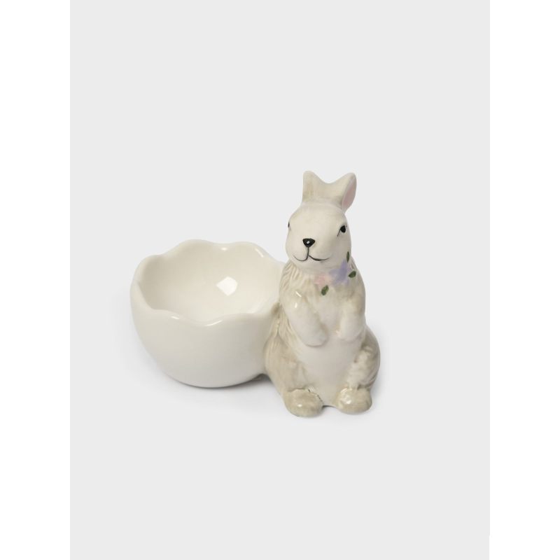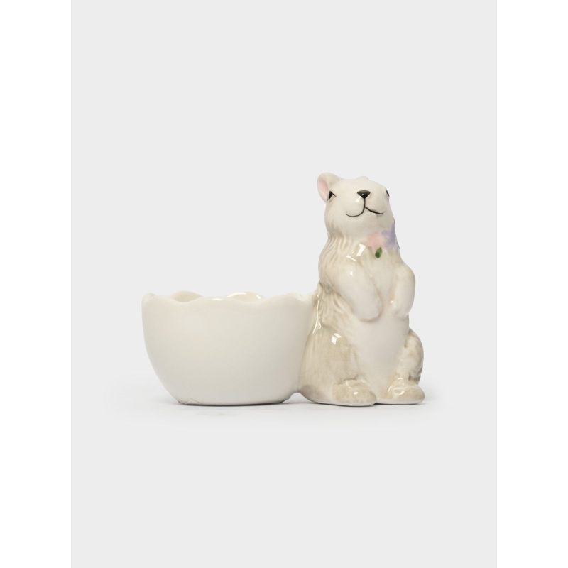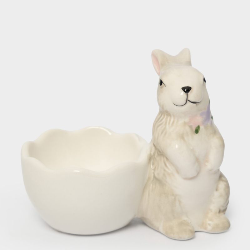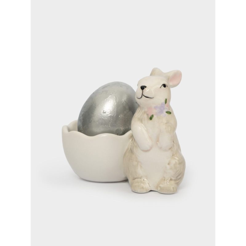Пасхальная подставка для яйца «Кролик с цветами» — очаровательное воплощение весеннего настроения в изящной керамической миниатюре!