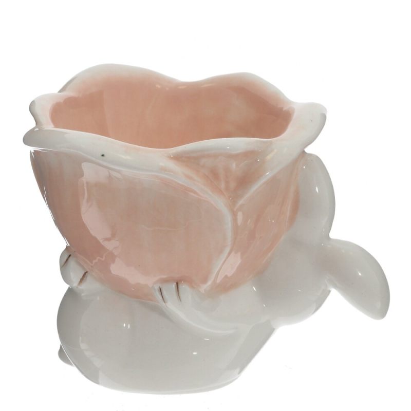 Этот изящный предмет словно сошёл со страниц детской сказки: белоснежный кролик с нежным бантиком аккуратно «обнимает» фарфоровую чашечку для яйца. Его трогательный взгляд и пушистые ушки вызывают умиление, а лаконичный дизайн подчёркивает утончённость изделия. Лёгкий цветочный акцент в оформлении добавляет композиции свежести и гармонии, напоминая о пробуждении природы в дни Пасхи.