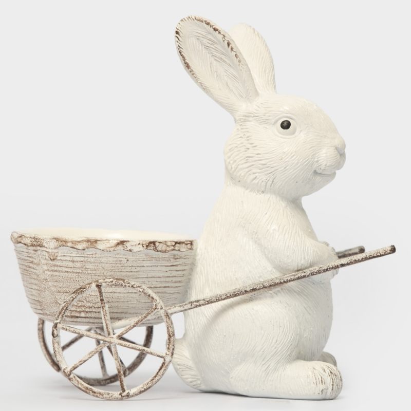 Представьте: солнечный луч падает на фигурку, подчёркивая её нежные контуры. Кролик с тележкой словно приглашает присоединиться к весеннему веселью, напоминая о простых радостях жизни — свежем воздухе, цветущих садах и семейном уюте.