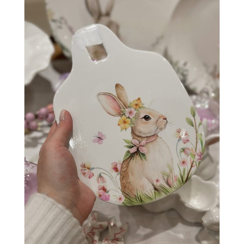 Представьте: солнечный свет играет на глянцевой поверхности подставки, подчёркивая нежные оттенки росписи. Кролик с цветочным венком словно приглашает собраться за столом всей семьёй, разделить радость праздника и насладиться моментом.