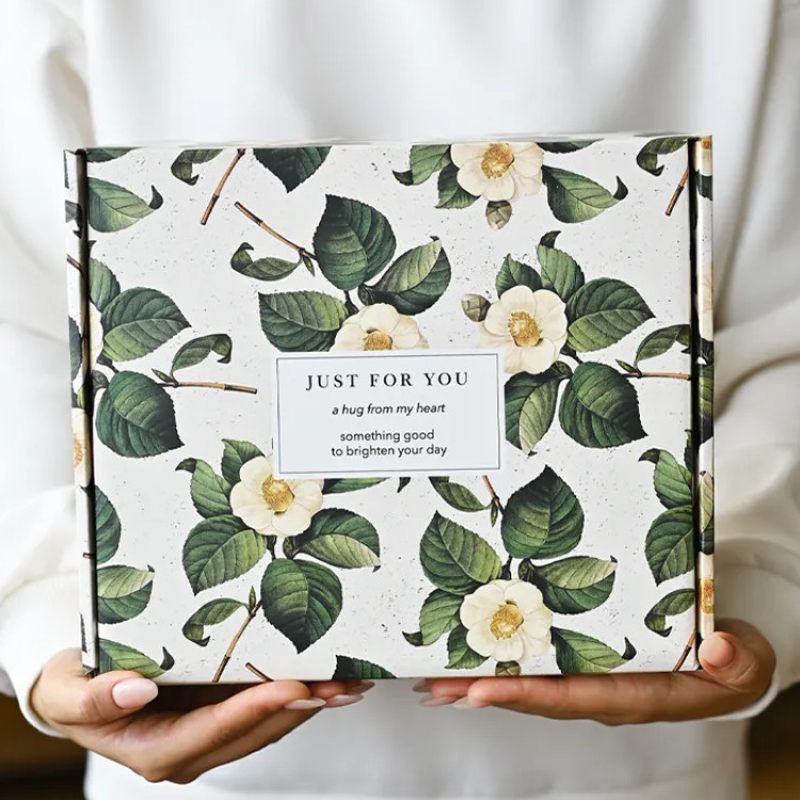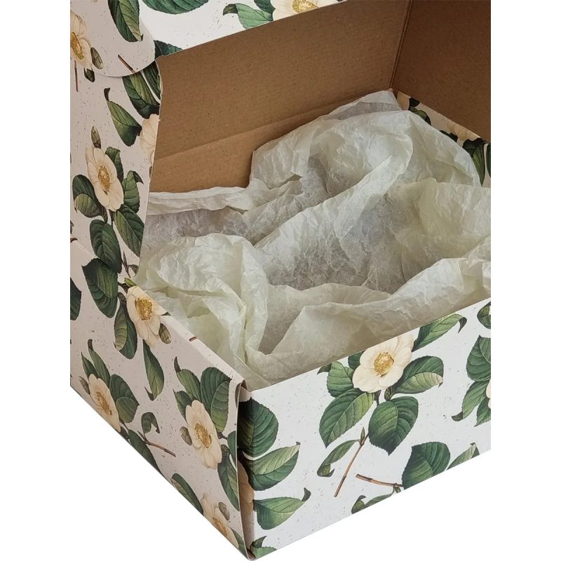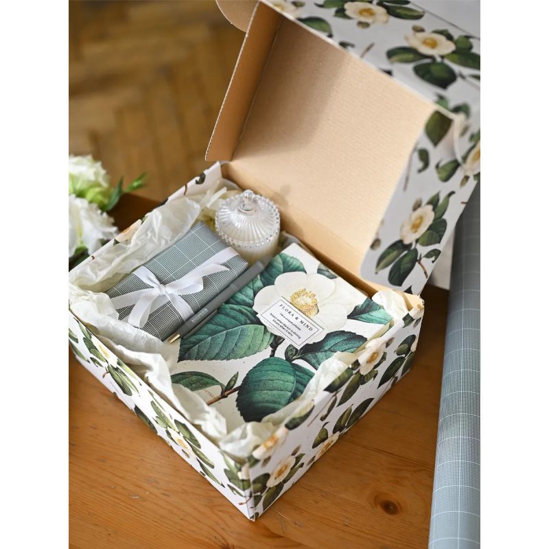 Праздничное настроение создаёт стильный цветочный принт, украшающий упаковку.