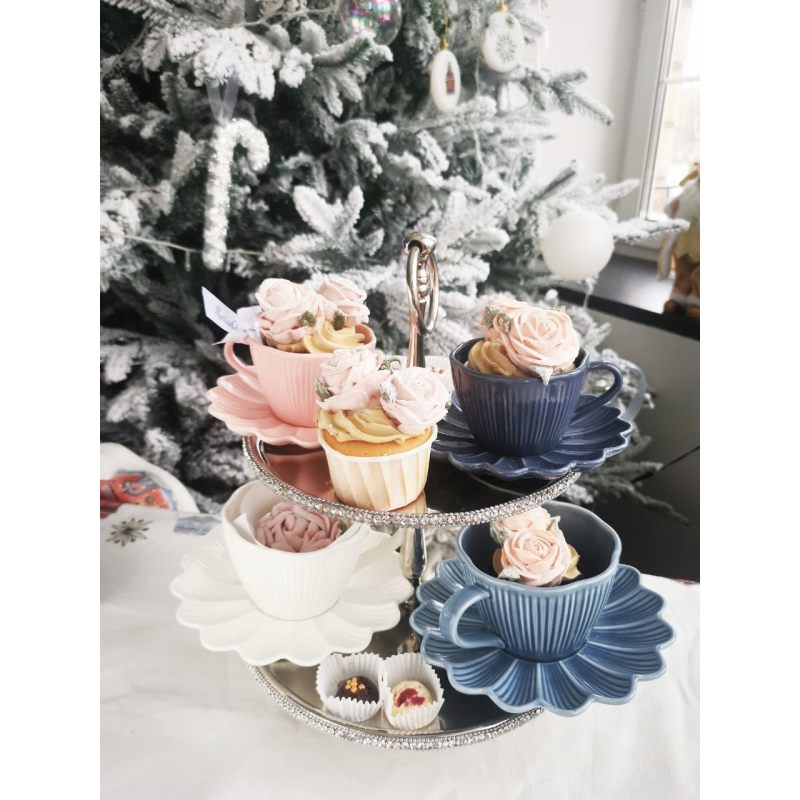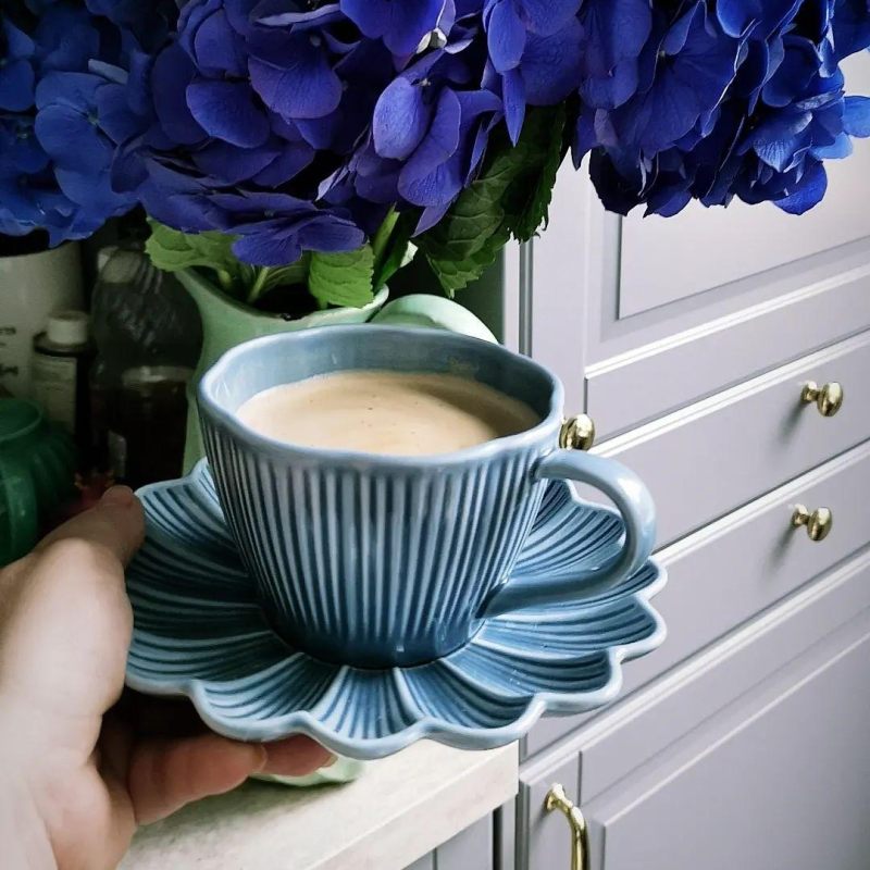 Чашка для кофе с блюдцем "Lotus magic" 150мл тёмно-синяя