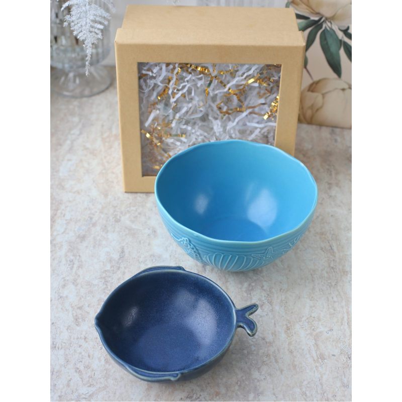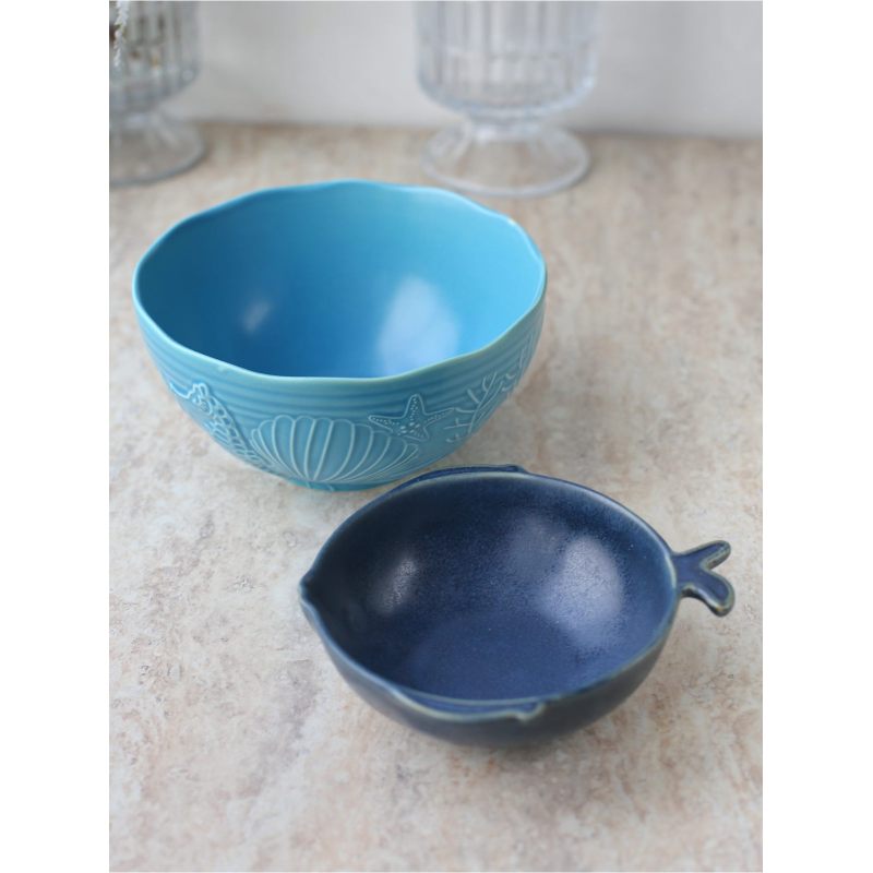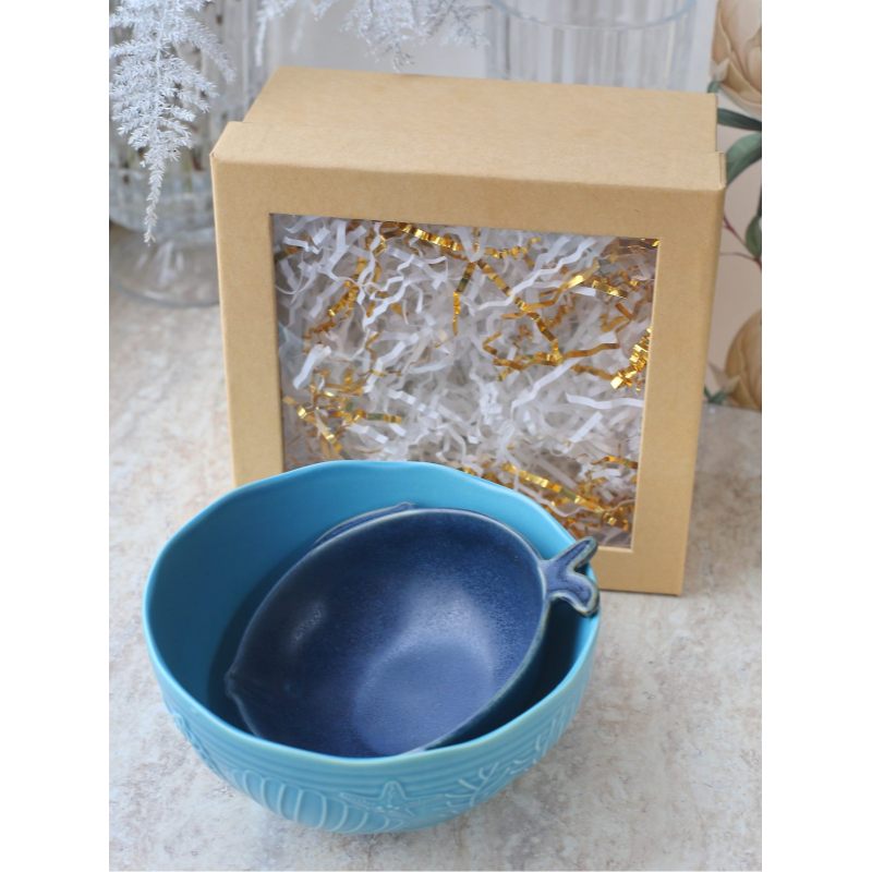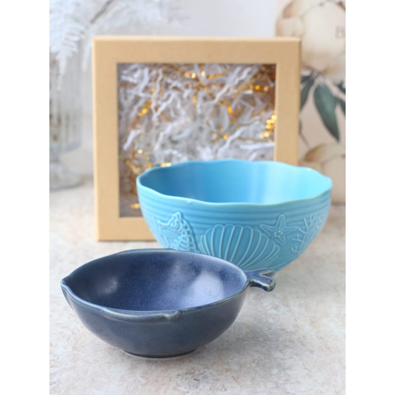 Набор из двух салатников в морском стиле — изящное дополнение к сервировке. Плавные линии, оттенки синего и декоративные мотивы напоминают о прибрежных пейзажах. Идеально для тех, кто ценит утончённый дизайн и атмосферу морского побережья в интерьере.